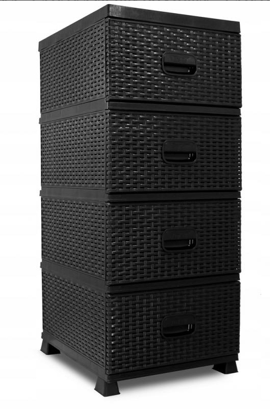 ПЛАСТИКОВЫЙ КОМОД С 4 ЯЩИКАМИ, ЧЕРНЫЙ РОТАН