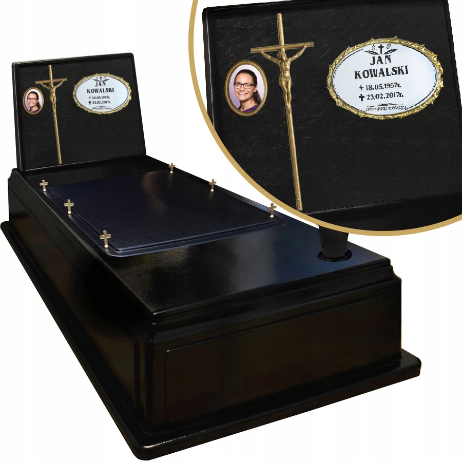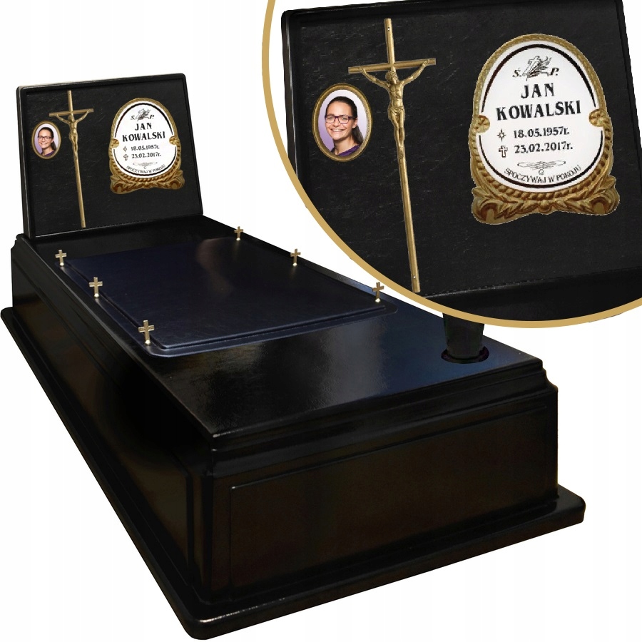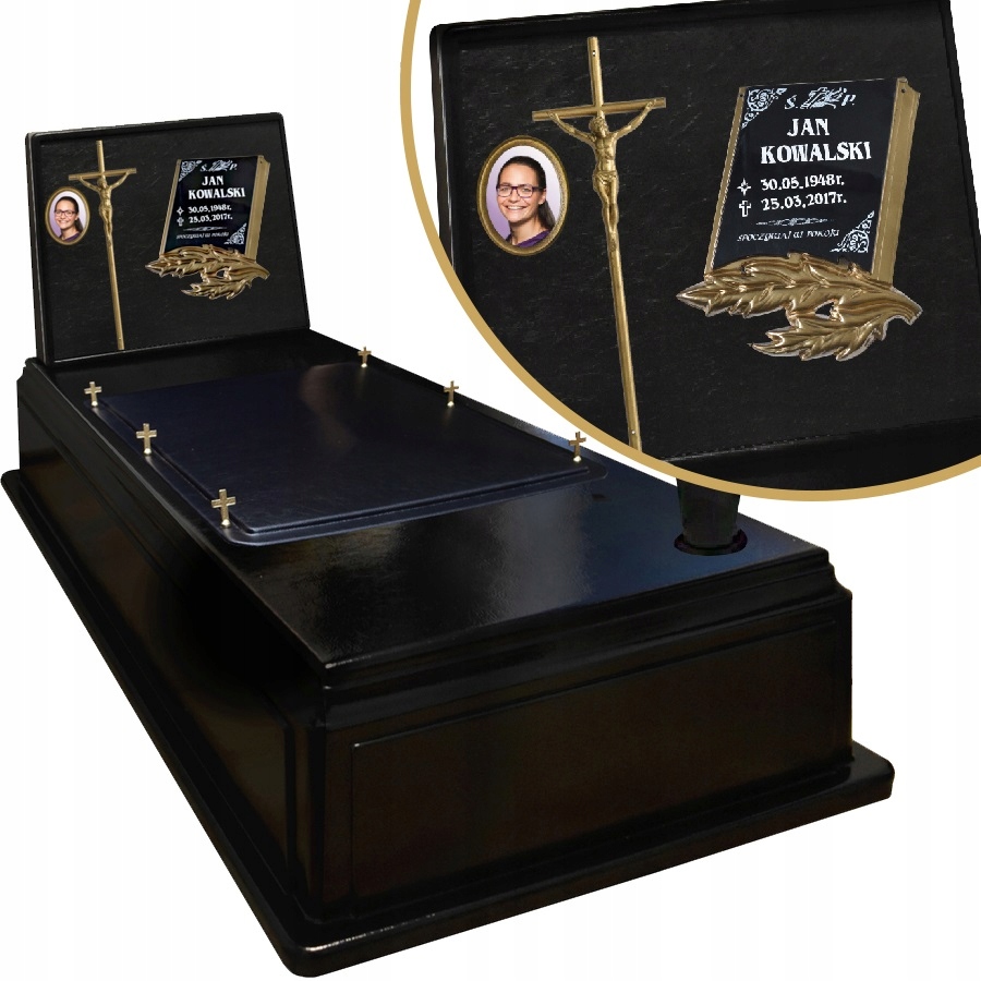 Пластиковый памятник кладбища изготовлен из модифицированного пластика (ABS) идеально имитирующей текстуру кожи. Пластина, перекрестная и полировка вставки. wymiary: