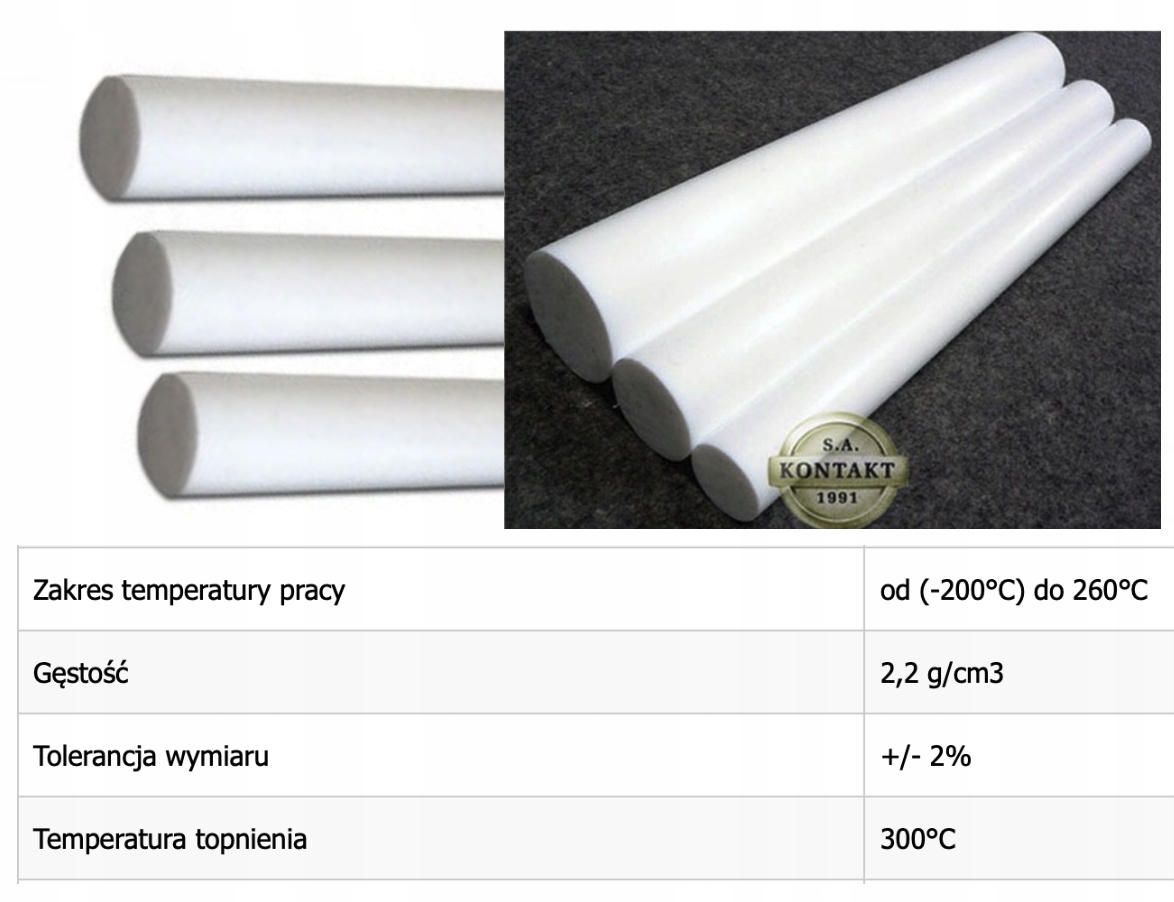 ptfe (тефлон) - это материал с наилучшим тепловым сопротивлением среди всех искусственных пластмассов с техническим использованием. Его самые высокие краткосрочные температуры составляют около 300 ° C, а длительное использование около 260 ° C. Тефлон характеризуется наименьшим коэффициентом трения, а также превосходной изоляцией и самым низким диэлектрическим коэффициентом по сравнению с другими материалами. Элементы, сделанные из тефлона, имеют отличные скользящие свойства и коэффициент низкого износа. Они устойчивы к гидролизу и горячему пар, они не поглощают воду.