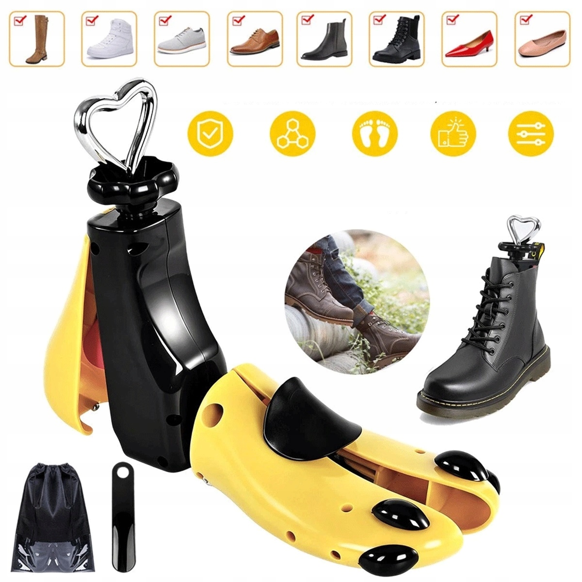 Просматривая «ПЛАСТИКОВИЙ РОЗТЯЖНИК УНІВЕРСАЛЬНИЙ ЖОВТОГО КОЛЬОРУ З РЕГУЛЮВАННЯМ ДОВЖИНИ», вы можете быть уверены, что данный товар из каталога «Носилки для обуви» будет доставлен из Польши и проверен на целостность. В цене товара, указанной на сайте, учтена доставка из Польши. Внимание!!! Товары для Евросоюза, согласно законодательству стран Евросоюза, могут отличаться упаковкой или наполнением.