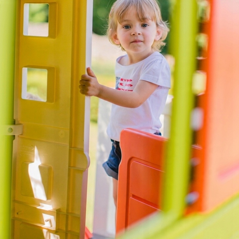 - Прочная детская площадка защищена анти-УФ-покрытием, защищающим цвета, поэтому игрушка прослужит долгие годы.