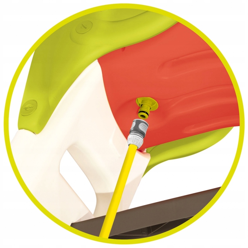- Несомненная привлекательность дома на ходули это горка с длиной горки 150 см, к которой можно подключить садовый шланг, что превратит ее в водную горку.