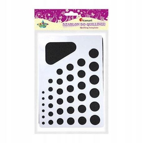 Шаблон для квиллинга, состоящий из 36 отверстий в форме кругов разного размера и пенопластовой основы.