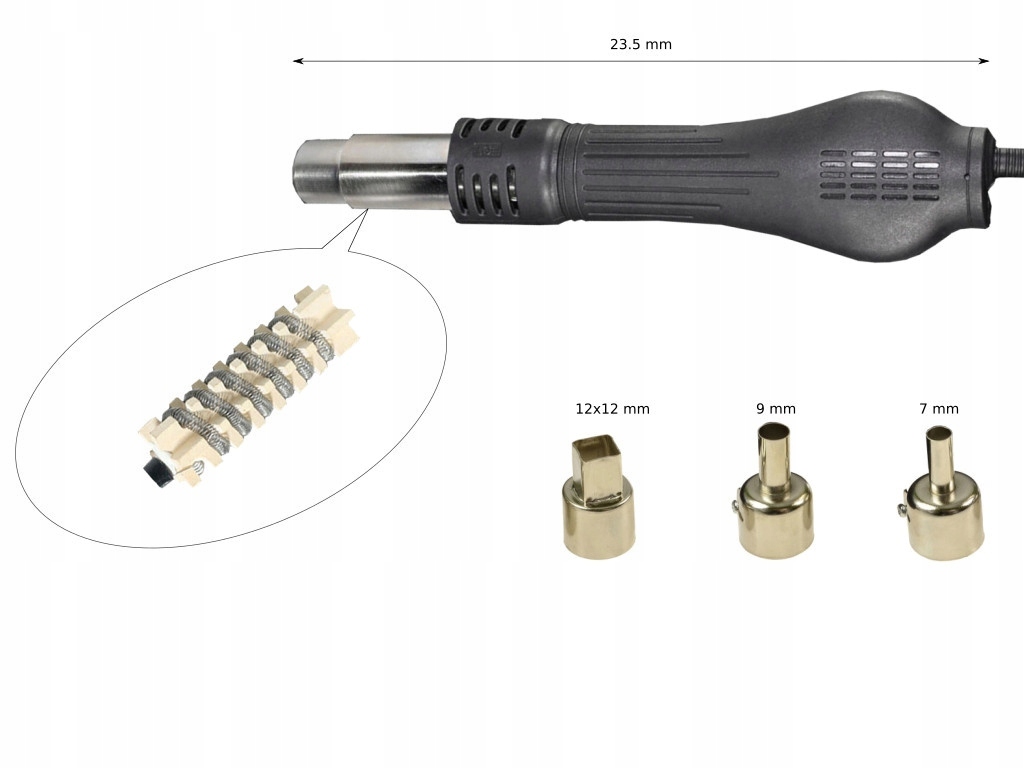 Насадка НО работает с любым устройством с диаметром наконечника насадки горячего воздуха 9 мм.