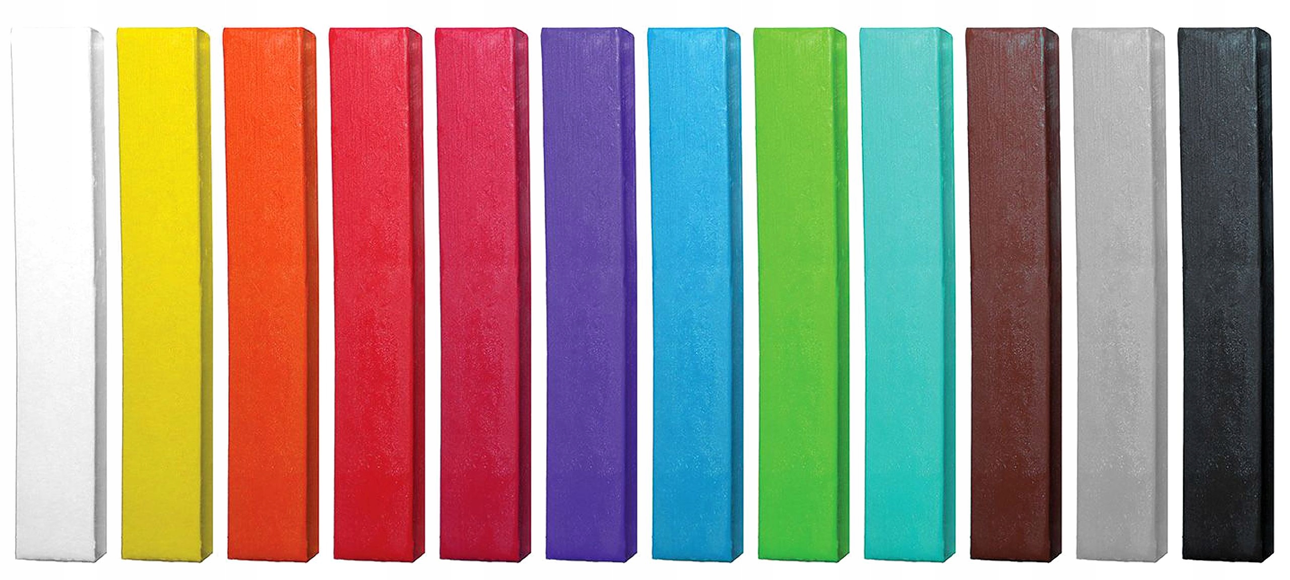 - В наборе 12 цветов: белый, желтый, оранжевый, красный, розовый, фиолетовый, синий, салатовый, небесно-голубой, коричневый, серый, черный.