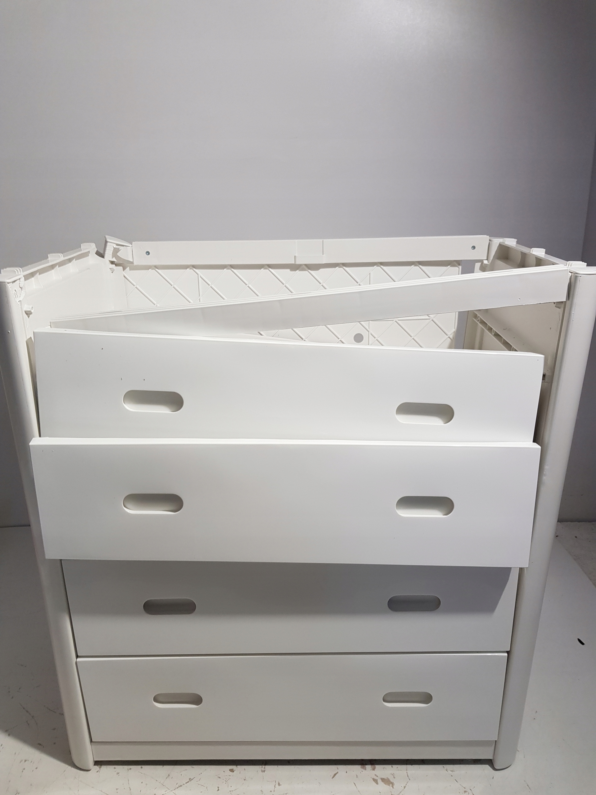 - Ванна + пеленальный столик + комод: 4 ящика и аксессуары, обеспечивающие немного места для хранения.