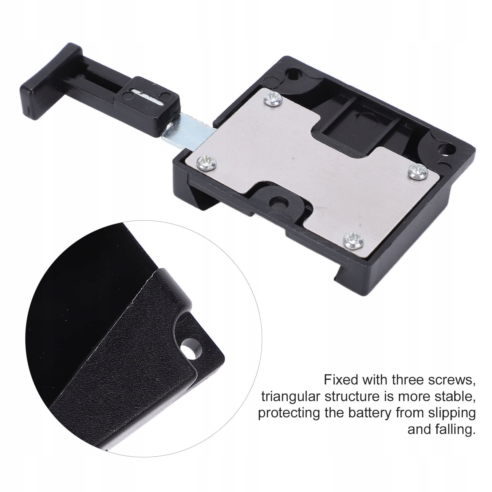 3. Крепится тремя винтами, треугольная конструкция более устойчива и защищает аккумулятор от скольжения и падения.