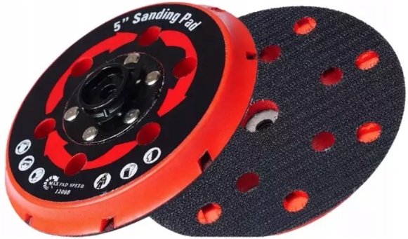 Преимуществом данной упорной пластины являются очень хорошо продуманные вентиляционные каналы с большой площадью поперечного сечения. Они выполнены радиально в гибком полиуретановом слое, непосредственно под так называемым клеевым слоем. Липучка. Они соединены с большими вентиляционными отверстиями и, улавливая воздух при вращении пластины, эффективно охлаждают полировальные подушечки со стороны липучки, предохраняя их от распада. Огромным преимуществом такого решения является также отделение колодки от тепла, выделяемого подшипниками эксцентрикового механизма.