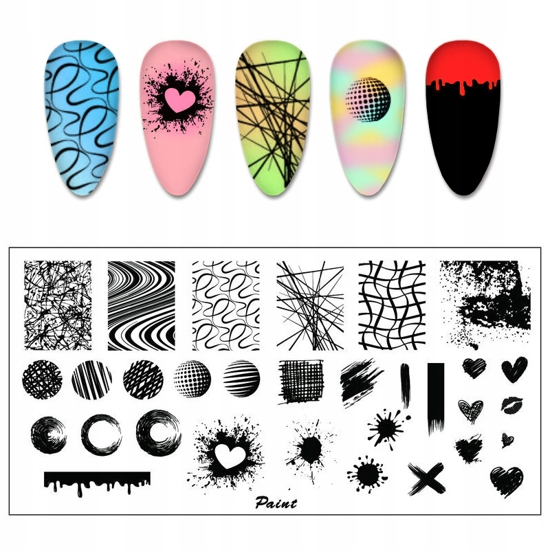 Узор: Шарик, пятно, клякса, сердечко, рот, краска, крестик, Х абстракция, линии, полоски - как на картинке