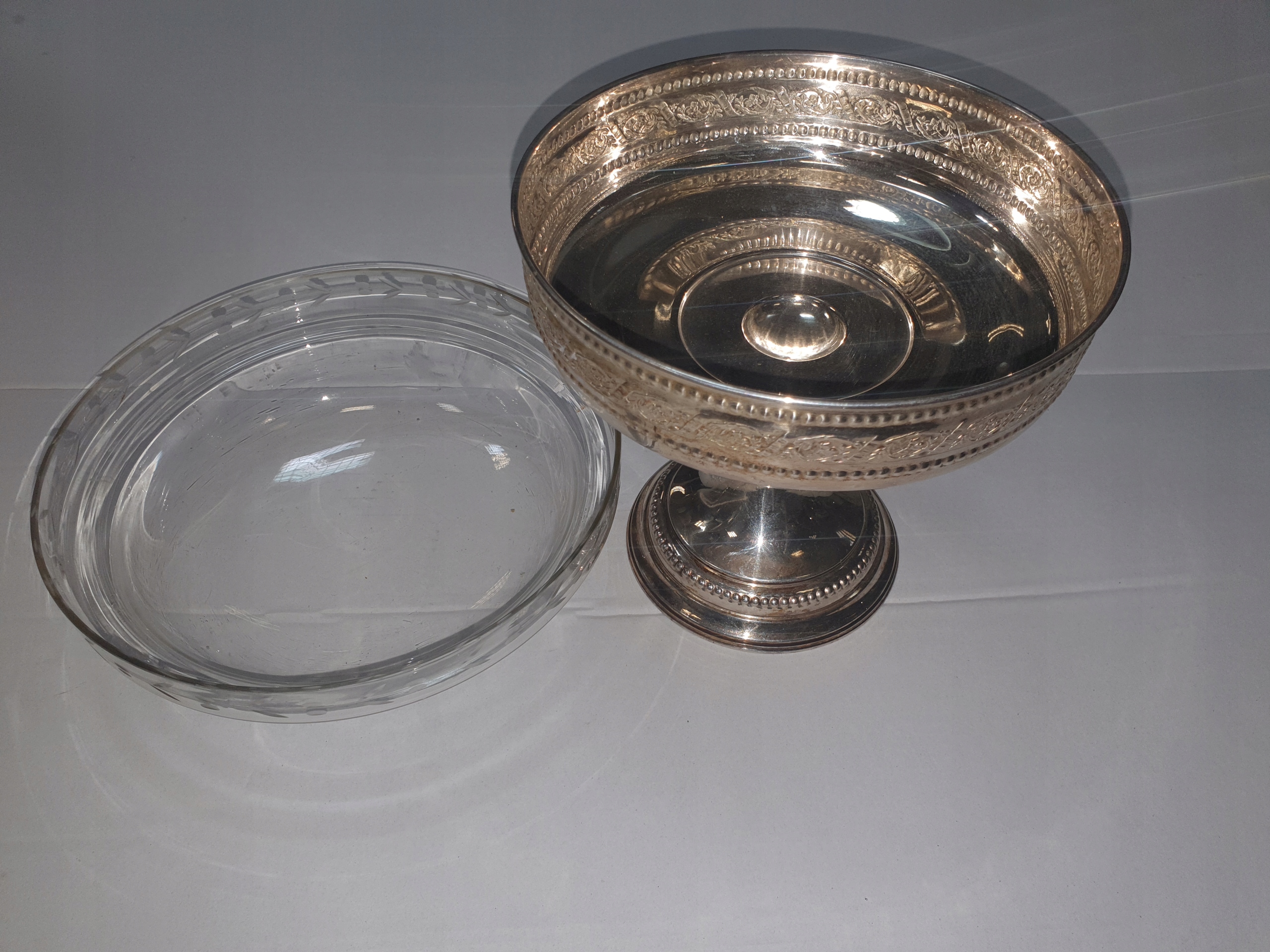Посеребренная латунная тарелка со стеклянной вставкой.