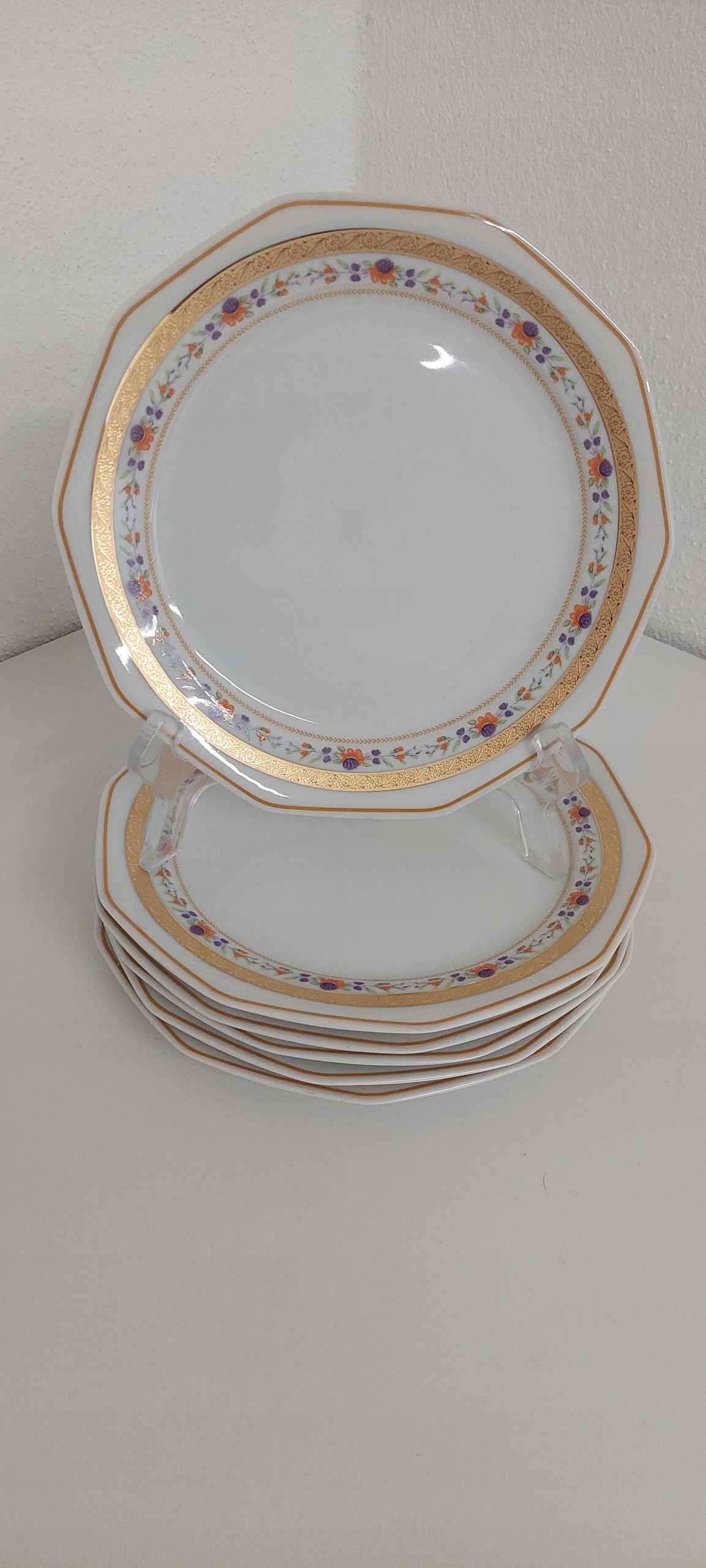 шесть десертных пластин богато позолочены диаметром 19,5 см