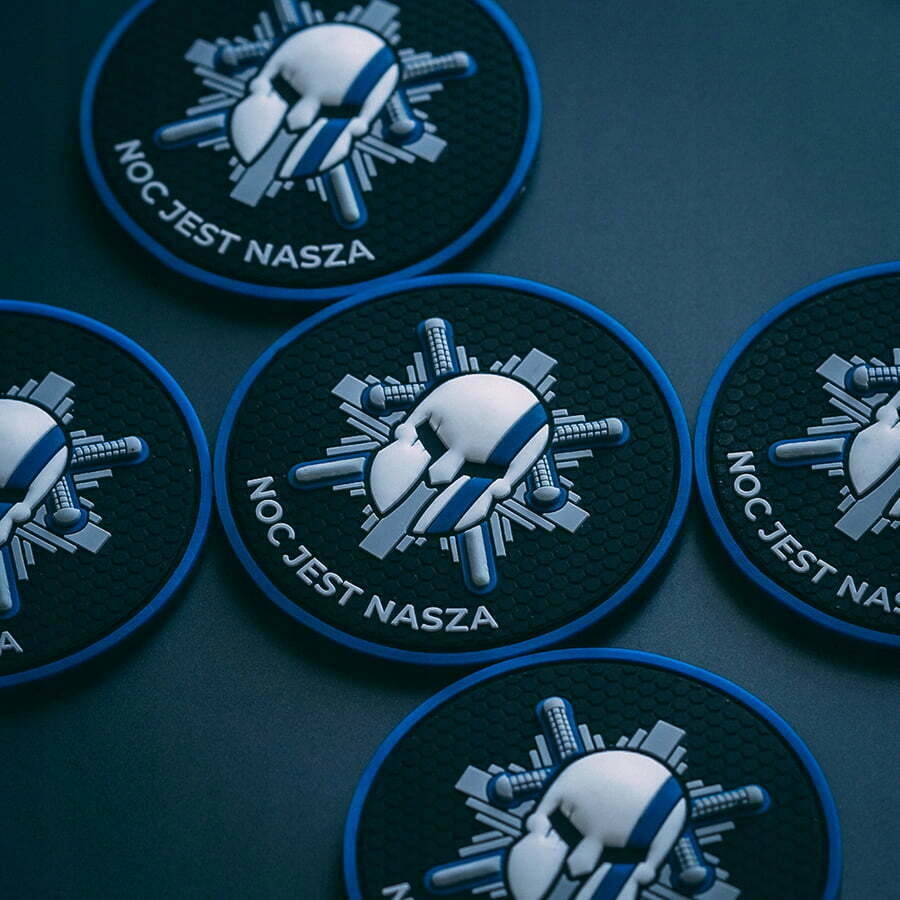 Объемная круглая нашивка ПМФ из ПВХ-резины на липучке с надписью «THE NIGHT IS OURS», диаметр 7,5 см.