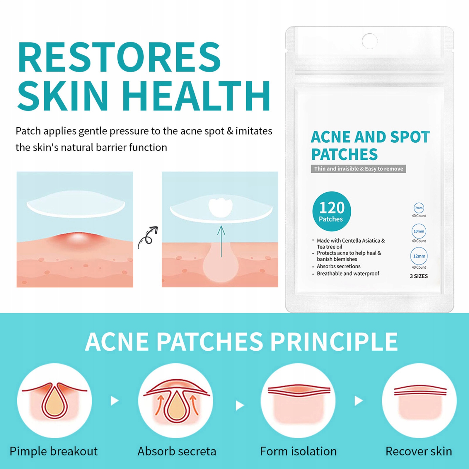 5. КОЛИЧЕСТВО: Наши пластыри от прыщей доступны в различных размерах до , всего 5 листов пластырей от прыщей и 24 пластыря на лист.