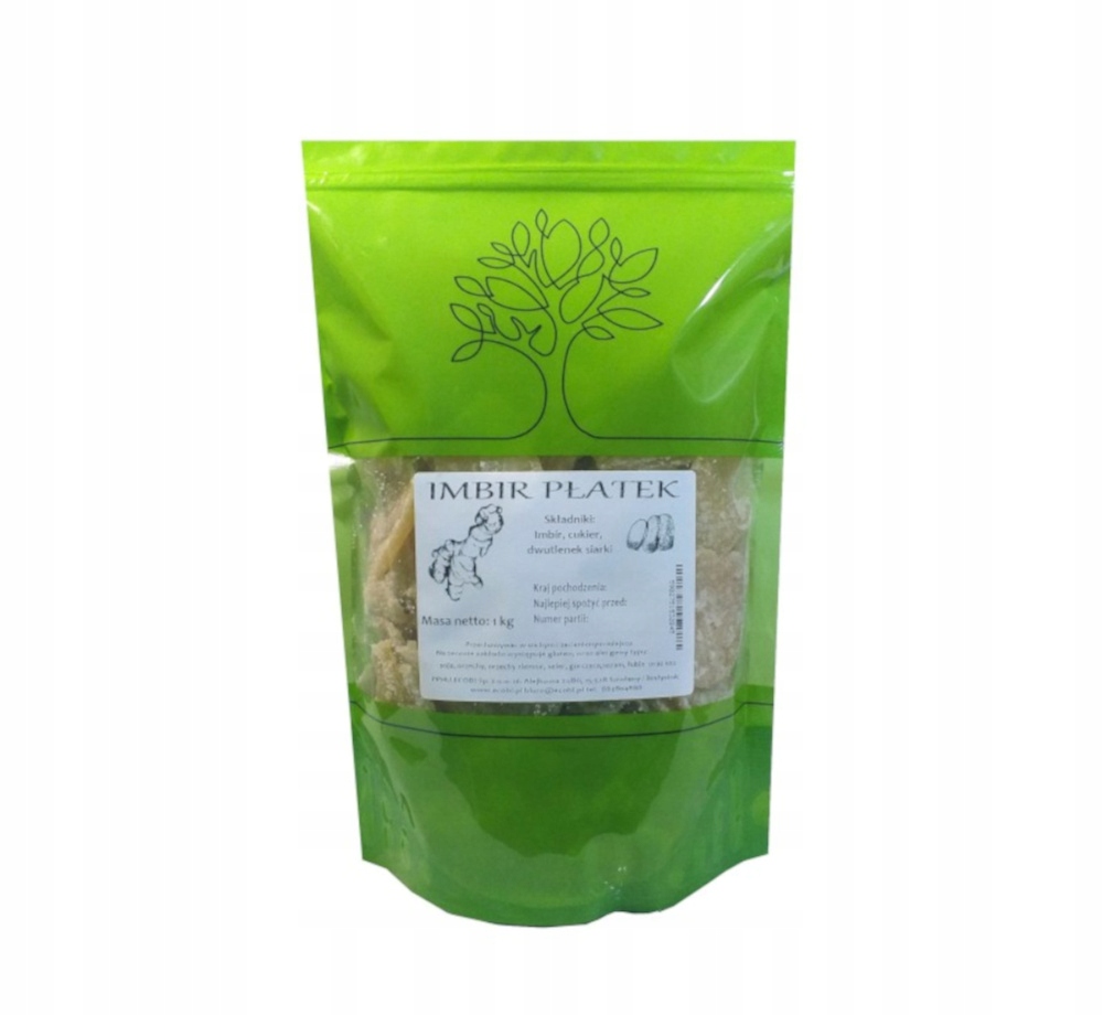 ПЛАСТІВЦІ ІМБИРУ 1кг зацукровані в пластівцях ECOBI