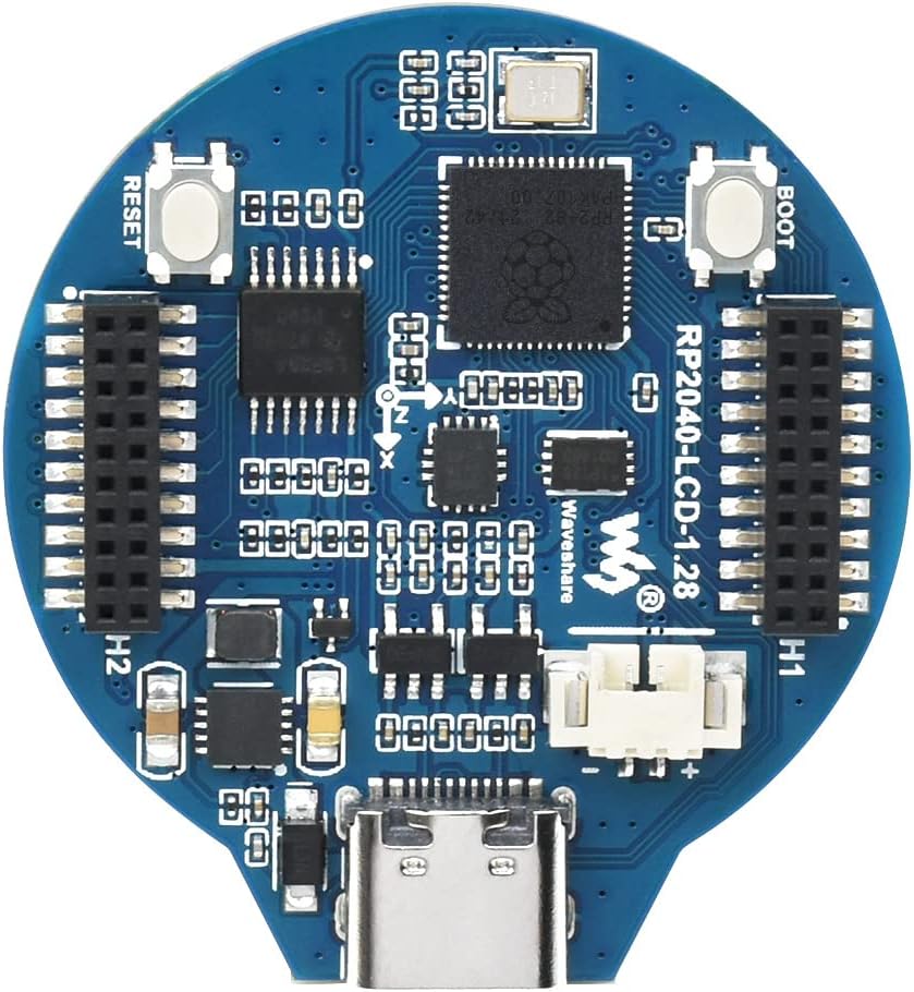 Плата микроконтроллера RP2040 с круглым ЖК-дисплеем 1,28 дюйма. Экран IPS 65K RGB 240×240 на базе Raspberry Pi RP2040, двухъядерный процессор ARM, встроенный 6-осевой датчик IMU, порт USB-C и т. д.
