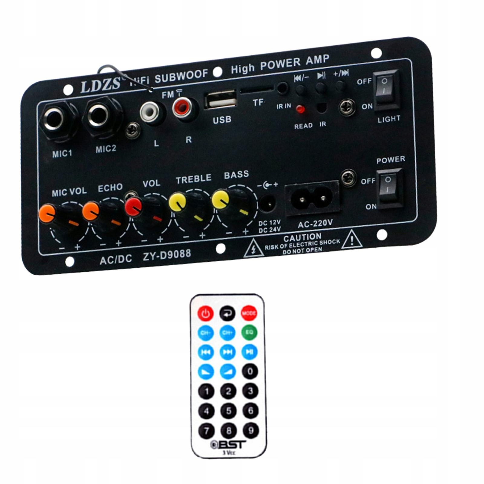 [В комплект входит]: 1 плата усилителя мощности, 1 кабель питания, 1 пульт дистанционного управления.