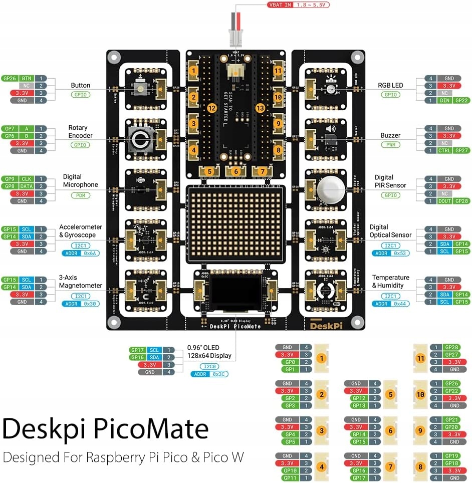 Все GPIO Pico доступны через разъемы и доступно до 11 разъемов Grove