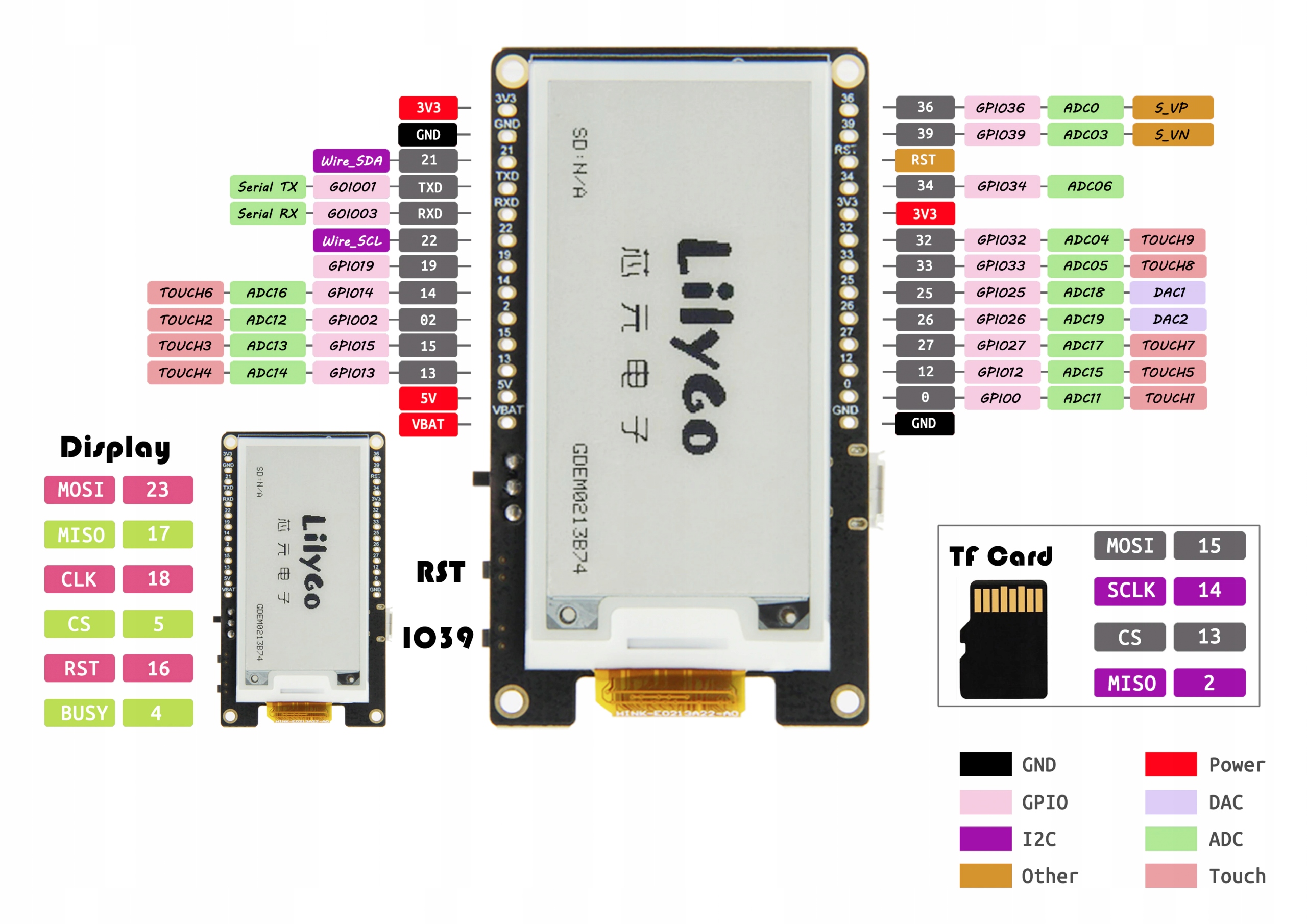 LILYGO® TTGO T-5 с дисплеем электронной бумаги 2,13 дюйма и ESP32 WiFi
