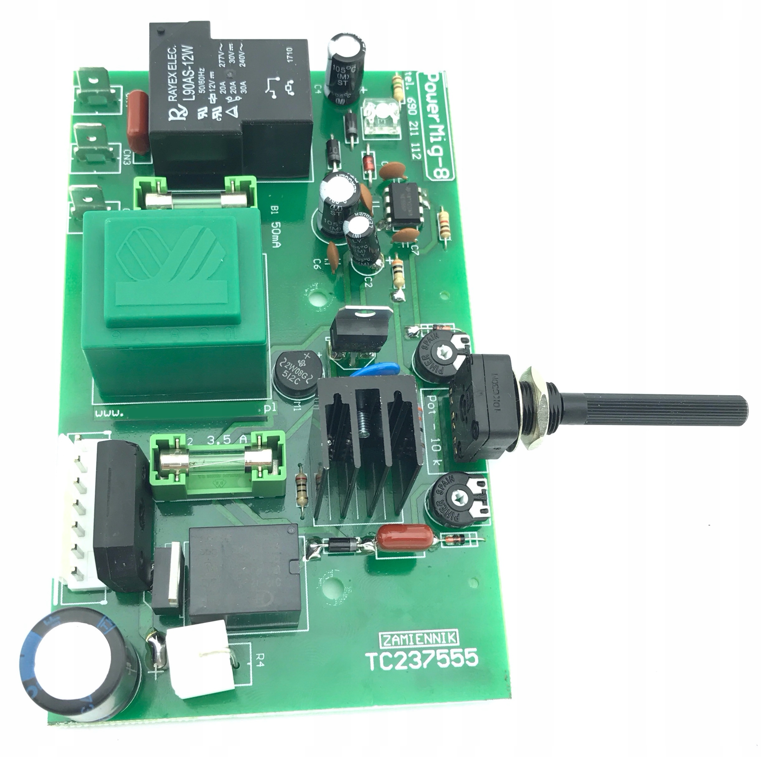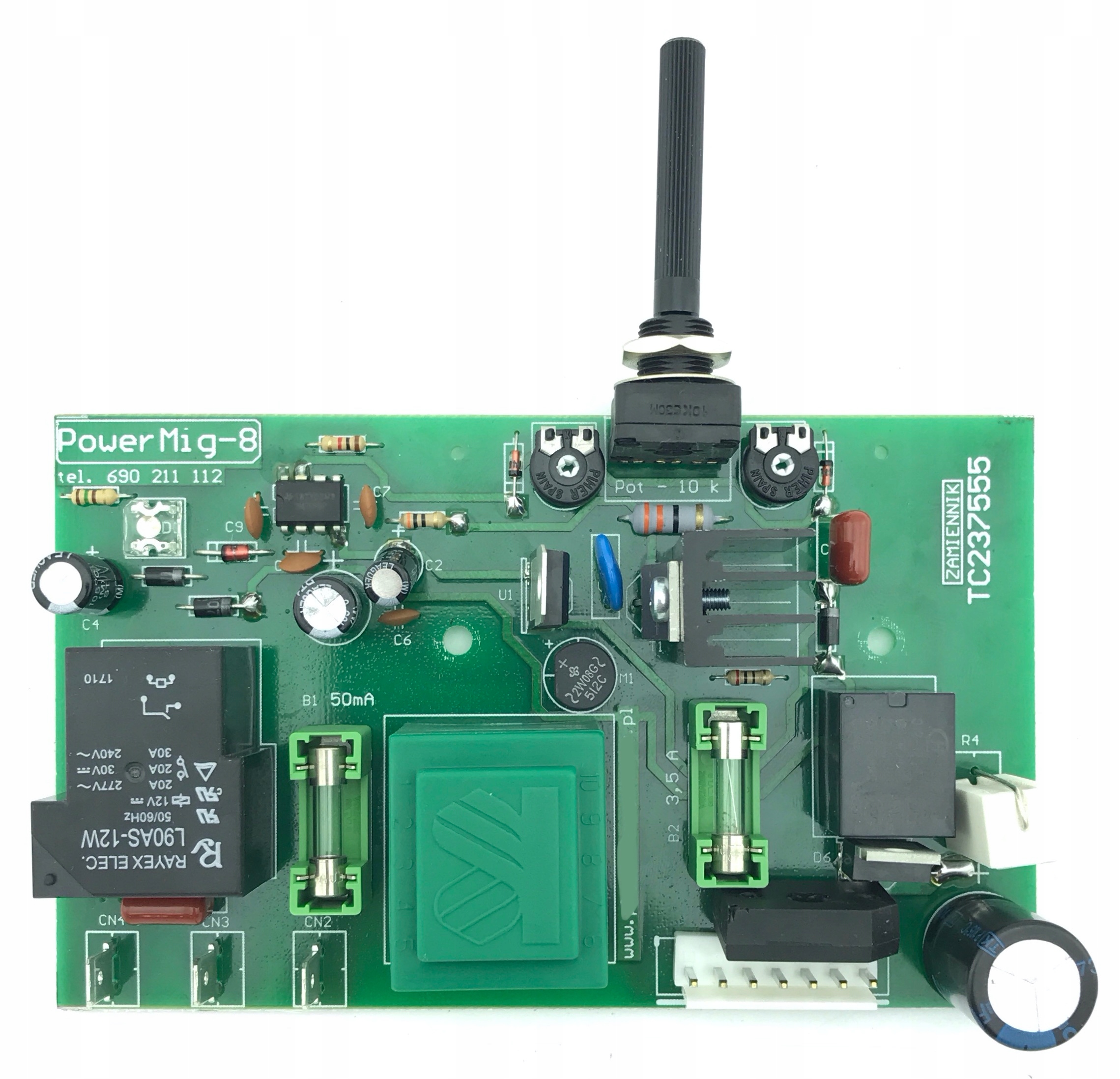 На двух фотографиях ниже показана оригинальная плата TC237555, которая использовалась, среди прочего, в мигоматах PowerMat/Einhell и других.