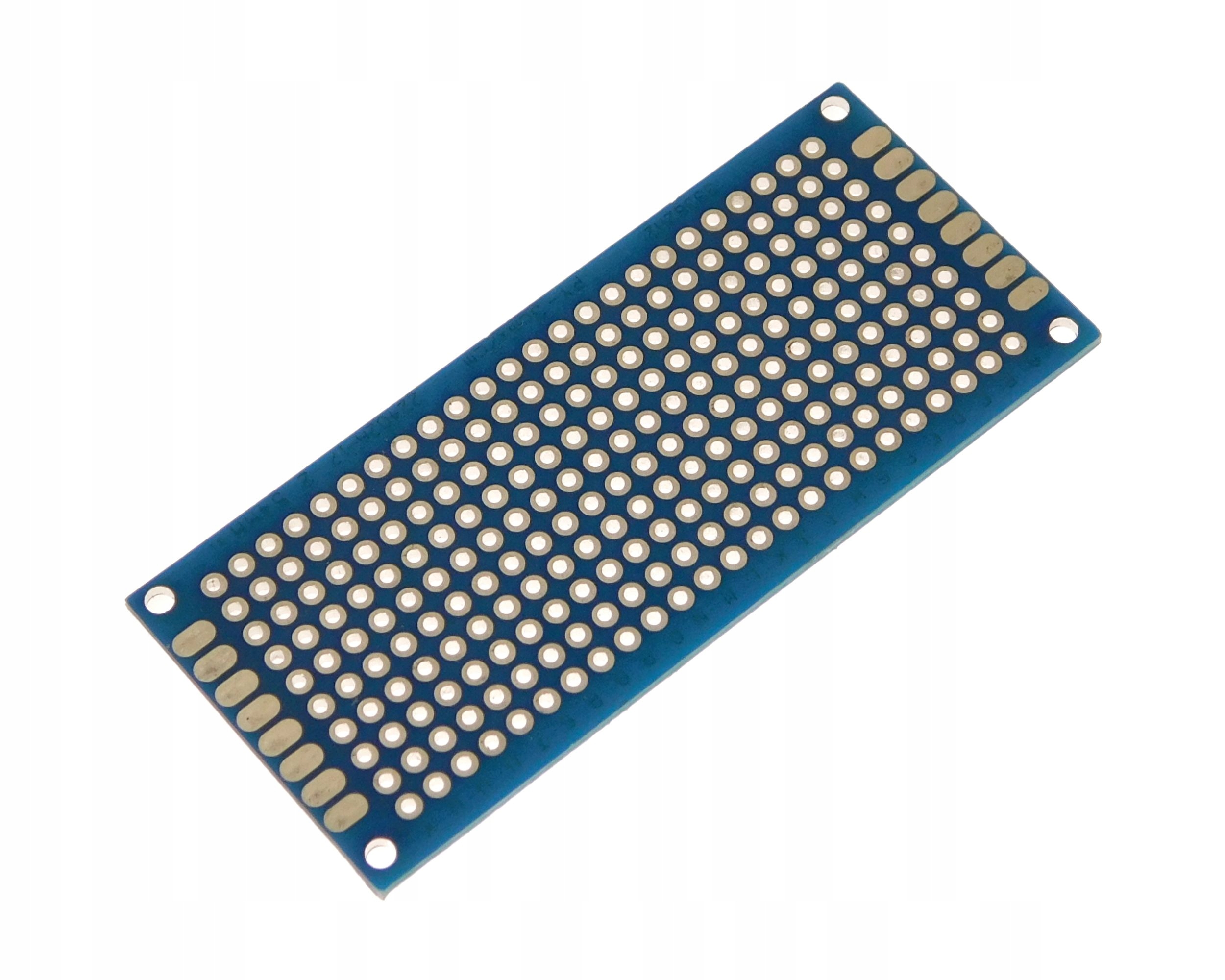 Универсальная плата из ламината ФР-4, толщиной 1,6 мм, двухсторонняя с металлизацией отверстий, луженые контактные площадки, синяя паяльная маска, стандартный шаг отверстий 2,54 мм (100 мил), который используется во многих различные электронные проекты, для сборки прототипов системной электроники, как для хобби, так и для профессиональных проектов.
