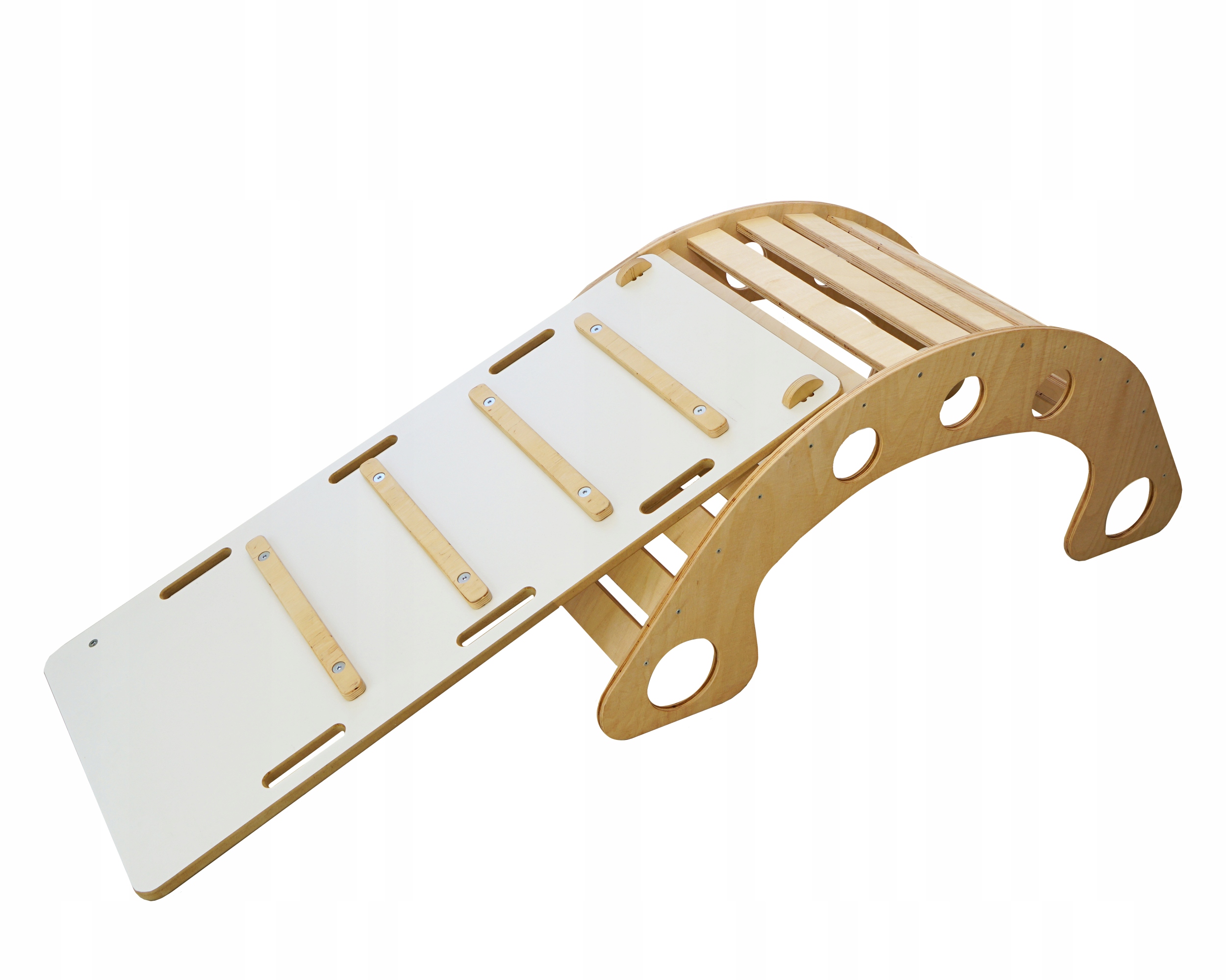 - В сочетании с нашей качалкой он отлично подойдет в качестве скалодром для самых маленьких детей, а также в качестве горки и даже балансировка доски для детей постарше.
