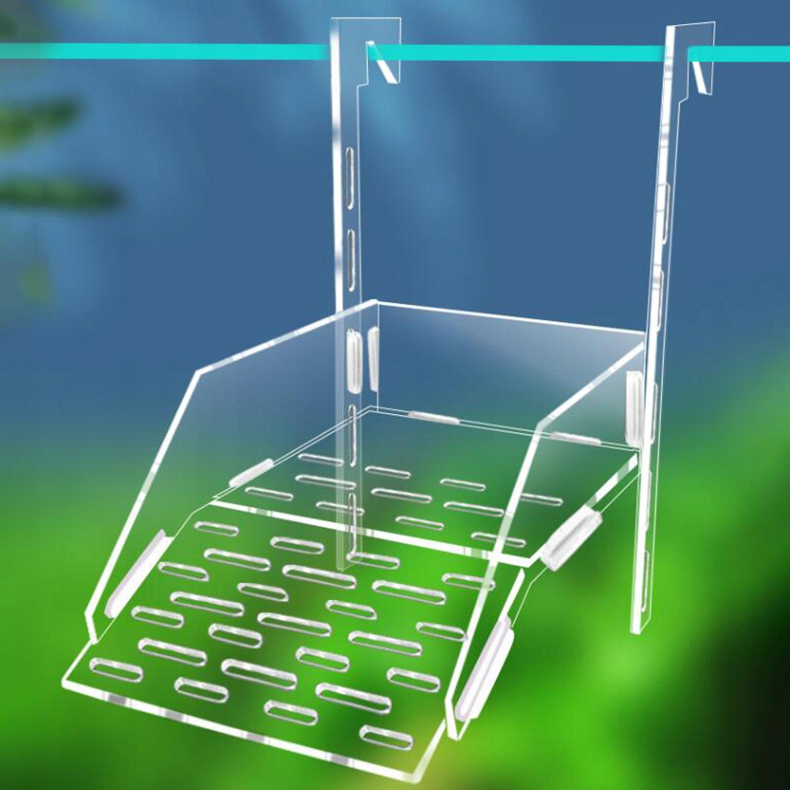 [Аксессуары для черепах]: подвесная платформа для купания черепах с искусственной травой. Подходит для пребывания на солнце и отдыха, подъема по пандусу для игр и отдыха.