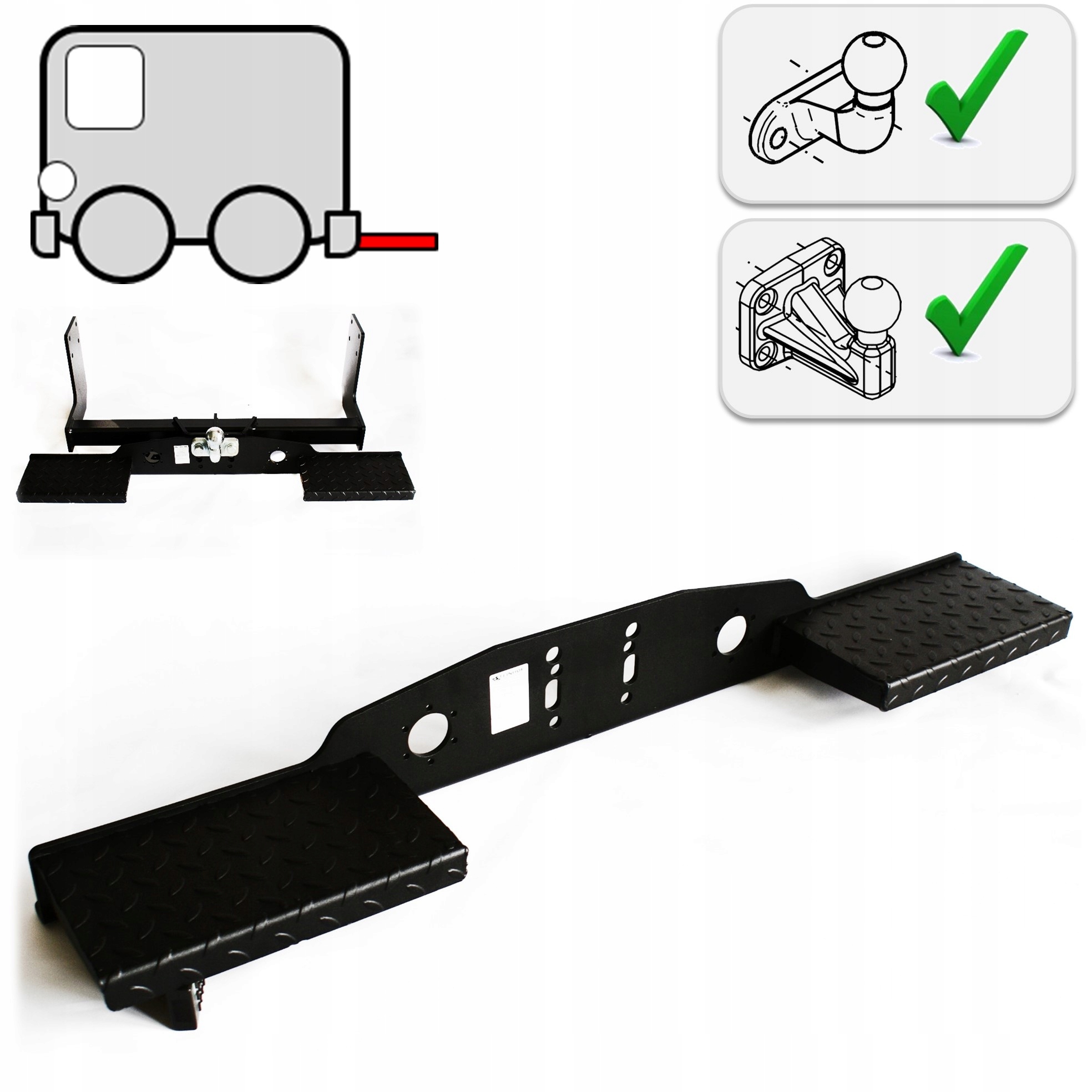 Устойчивая двусторонняя подножка облегчает загрузку товара через заднюю дверь автомобиля. Доступно только с планкой для крепления крюка.
