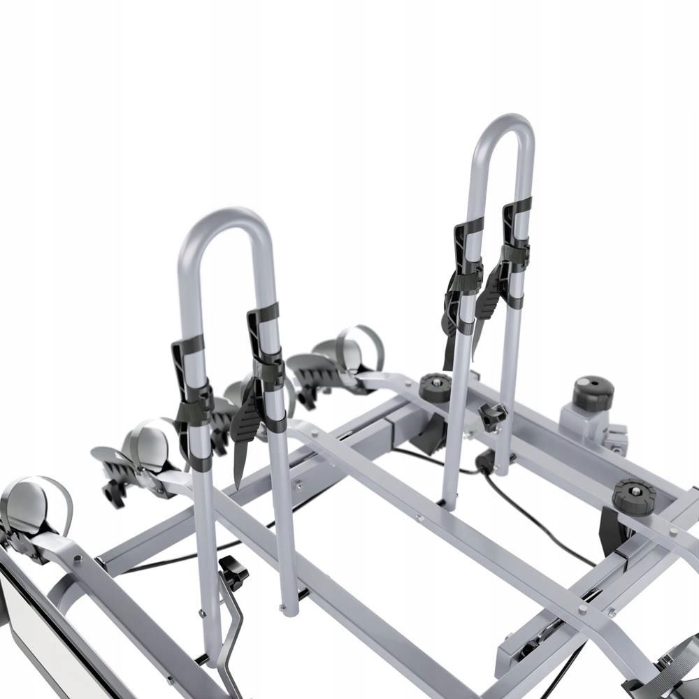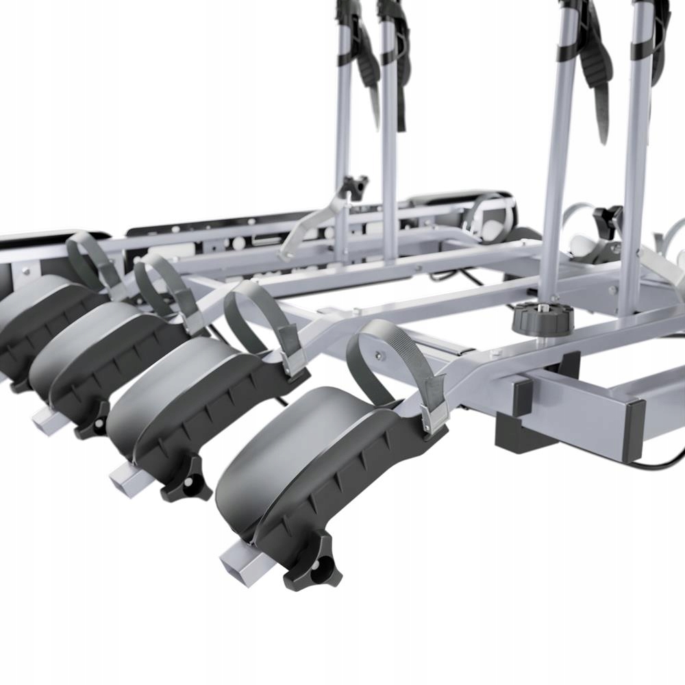 - Велокрепление на фаркопе позволяет удобно перевозить четыре велосипеда, а прочная стальная конструкция гарантирует его прочность и долговечность.