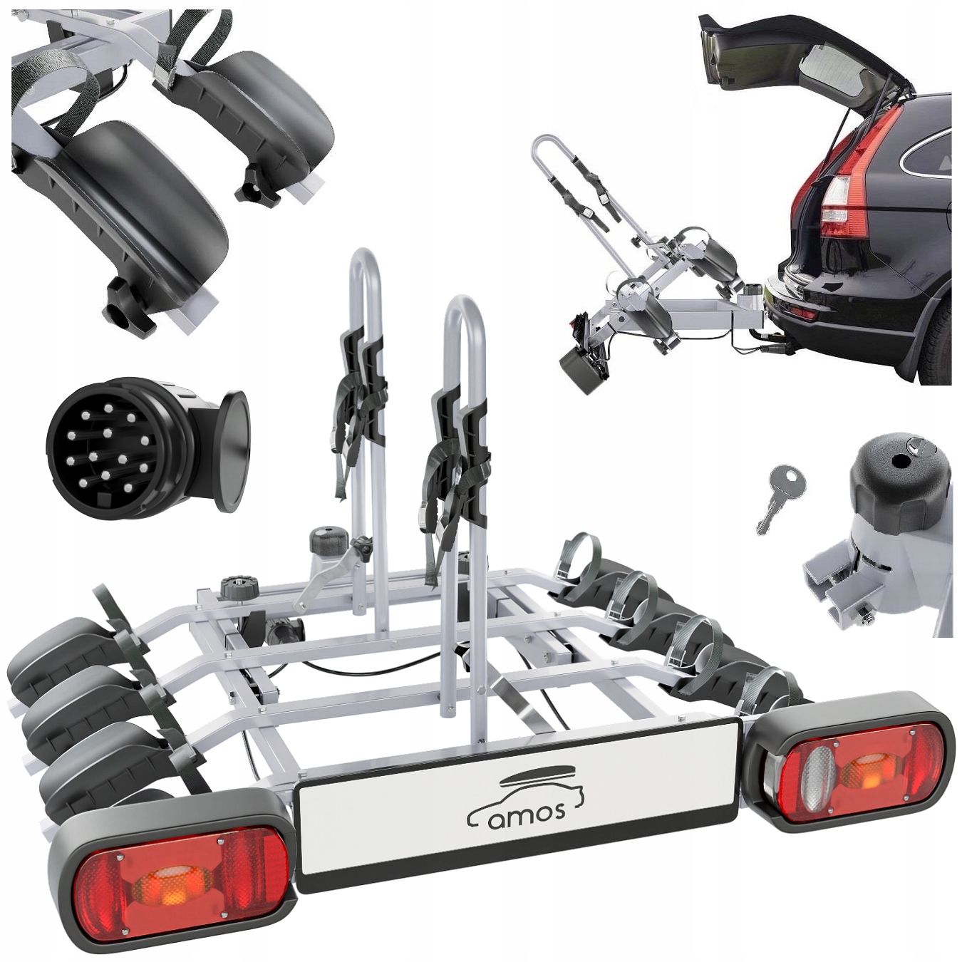 Если вы ищете прочную и простую в установке велосипедную платформу с фаркопом, Amos Tytan 4 для 4 велосипедов — идеальное решение для вас. Откройте для себя удобство перевозки велосипедов благодаря велоплатформе от польского производителя Amos.
