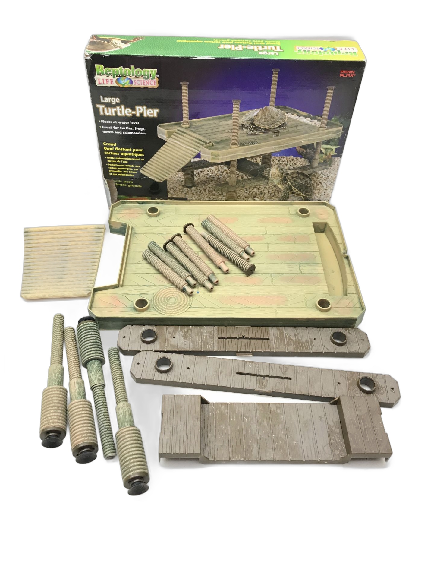 Простая рампа стыковки позволяет черепаху легко подняться на самый высокий уровень. На пирсе на сетке есть гравийная корзина, которая будет использоваться для поддержания веса большой черепахи при тестировании рампы. Суд доступен отдельно