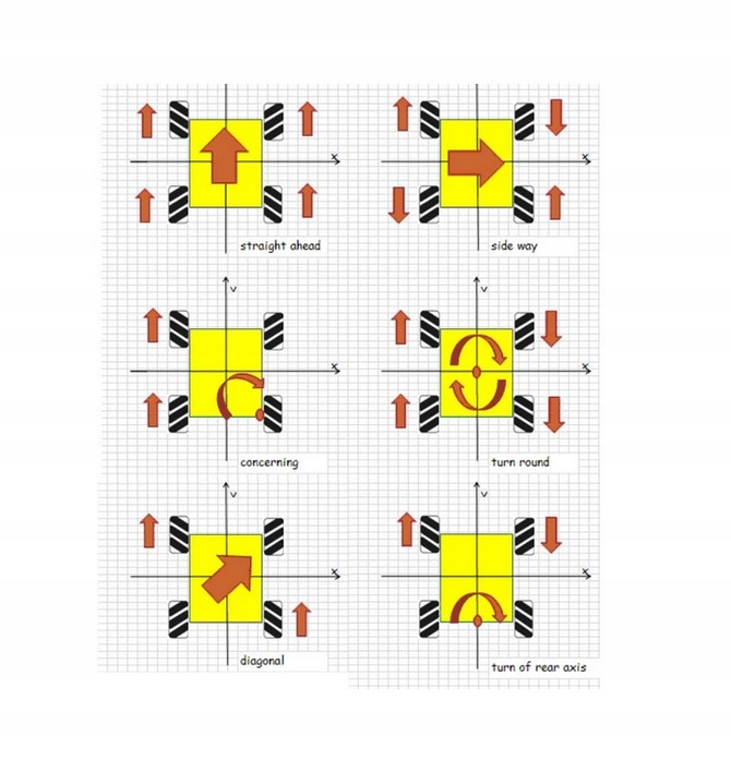 ✅Благодаря такой конструкции, когда все колеса правильно приводятся в движение и вращаются в разные стороны, автомобиль может двигаться вбок, вперед, назад и вращаться на месте на 360 градусов. Это достигается за счет изменения скорости и направления вращения отдельных колес, что позволяет обеспечить точное управление и маневрирование.