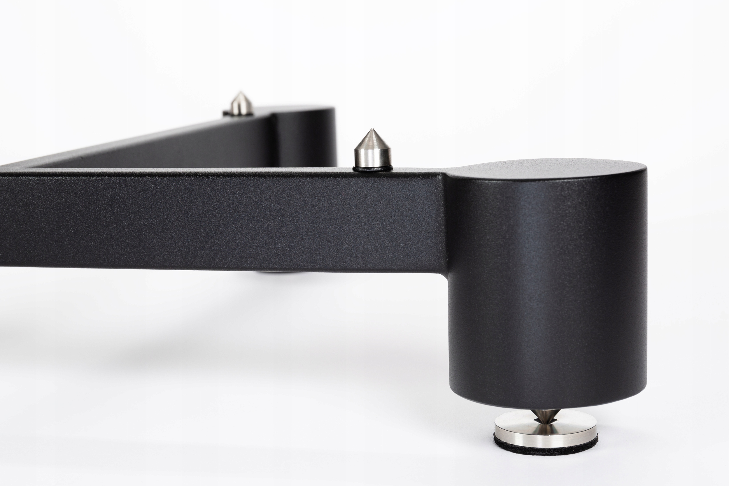 Антивибрационные платформы предназначены для аудиокомпонентов высокого класса. Конструкции были настроены путем соответствующего сочетания легированных и высокоуглеродистых сталей. Каркас состоит из толстостенных стоек из углеродистой стали S235JR (применяется для несущих конструкций, подверженных высоким динамическим нагрузкам – например, в кранах) и соединяющих их поперечин из высокопрочной легированной стали S355. Точное выравнивание осуществляется с помощью регулируемых антивибрационных конусов.