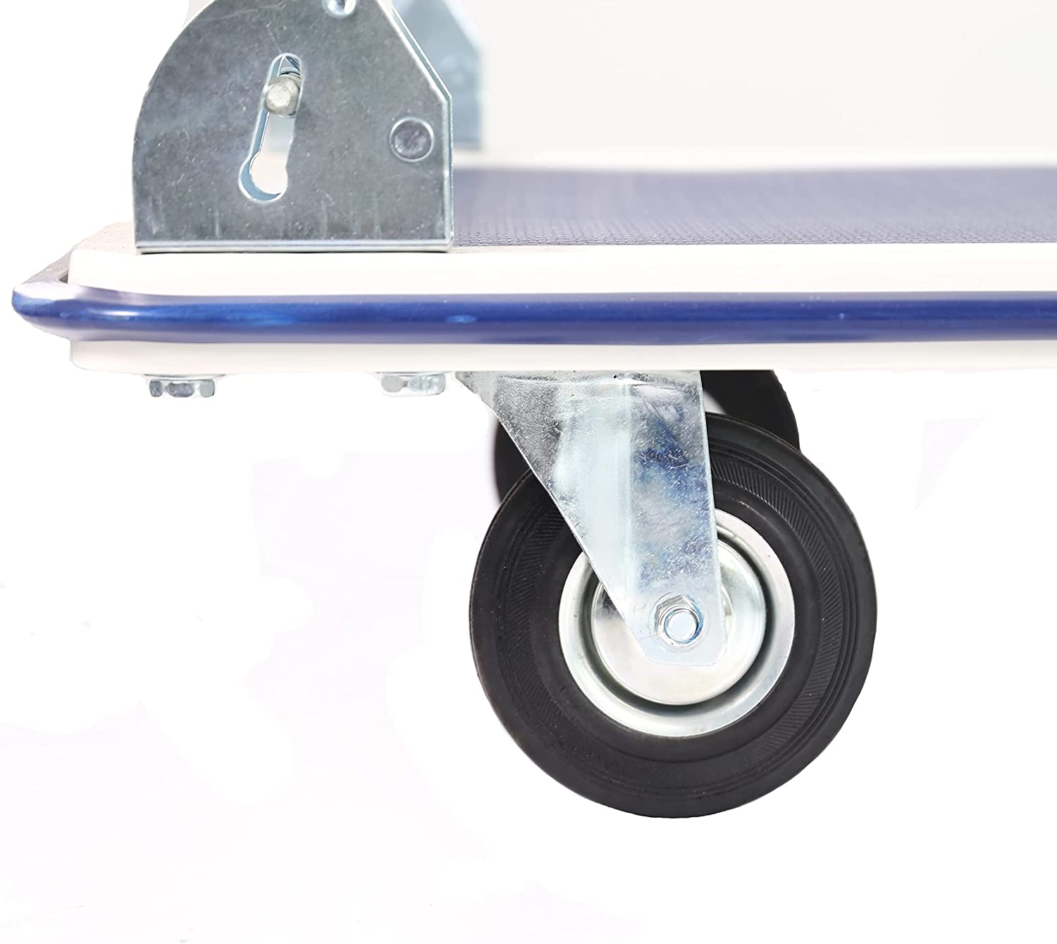 Тележка имеет очень прочную транспортную платформу размером 47 х 74 см, что делает тележку пригодной для использования на складах, в магазинах, мастерских и где бы она ни находилась. необходимые для перевозки грузов. Платформа изготовлена из профилированного стального листа с дополнительным тиснением для повышения жесткости.
