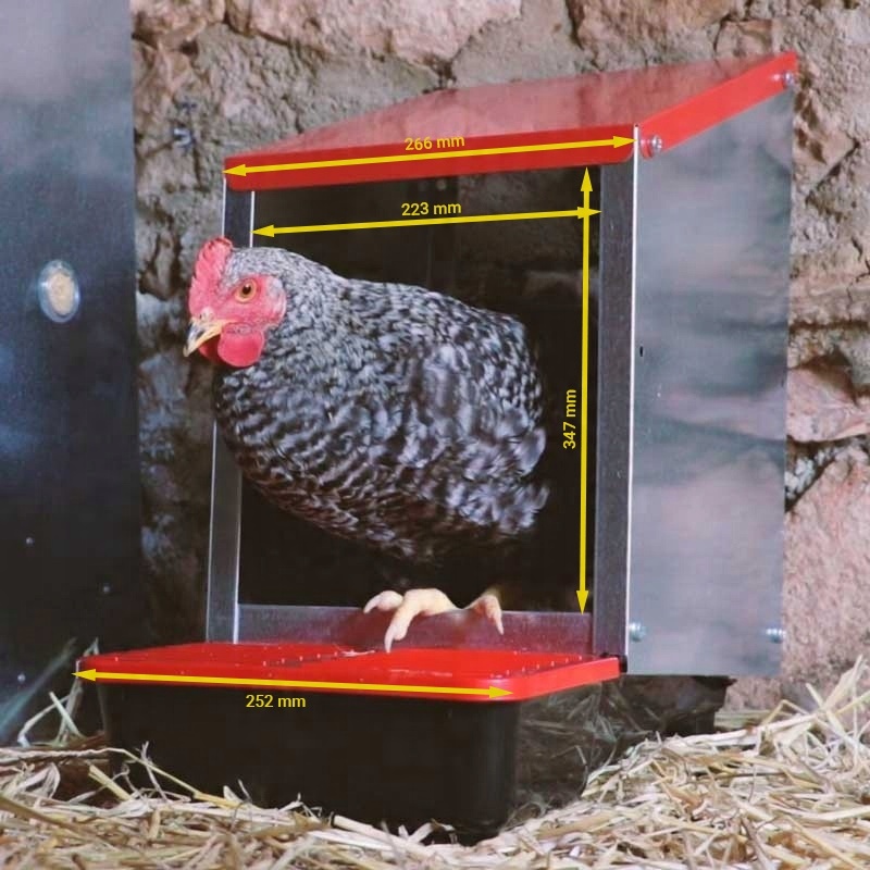 Автоматический розетка для цыплят предназначен для хенн слоев. Имеет три отдельных позиция , где цыплята в тихих условиях могут выдержать яйца. Использование гнезд с внешним ящиком решит проблему уничтожения яиц, которые достигают многих заводчиков.