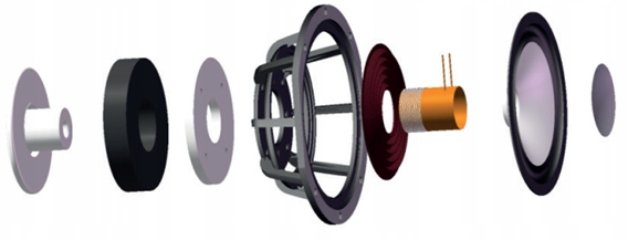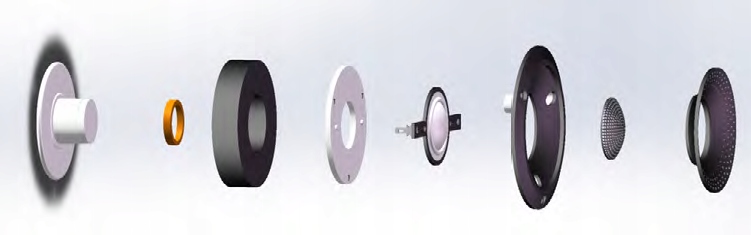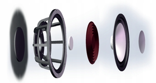 - Легкая алюминиевая диафрагма измененной формы обеспечивает более быстрое и точное движение диафрагмы, что приводит к более точный и «аэрированный» звук.