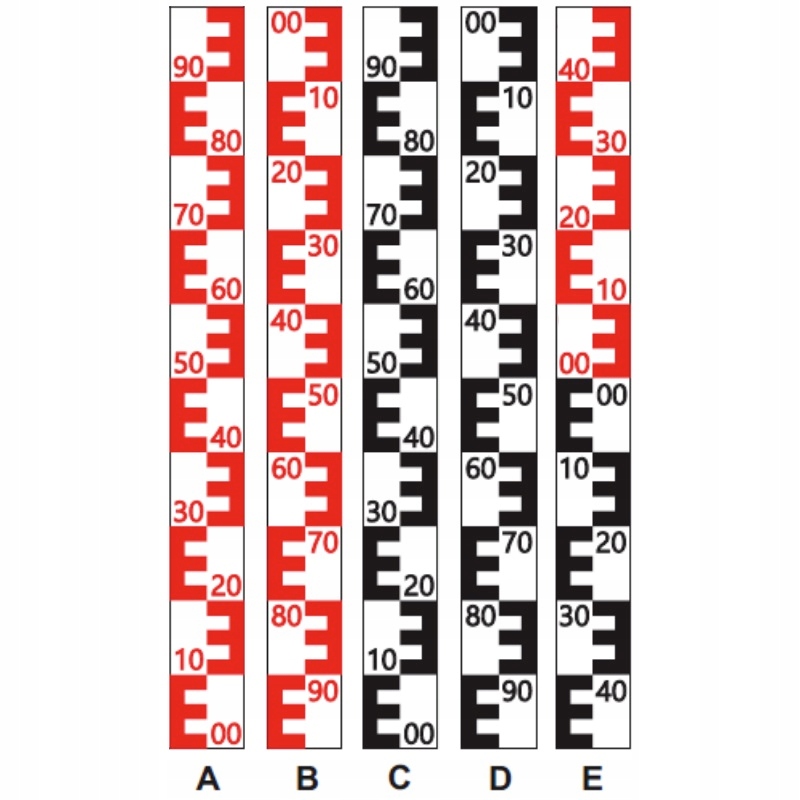 E – черно-красное деление от 0,5 м до 0,5 м.