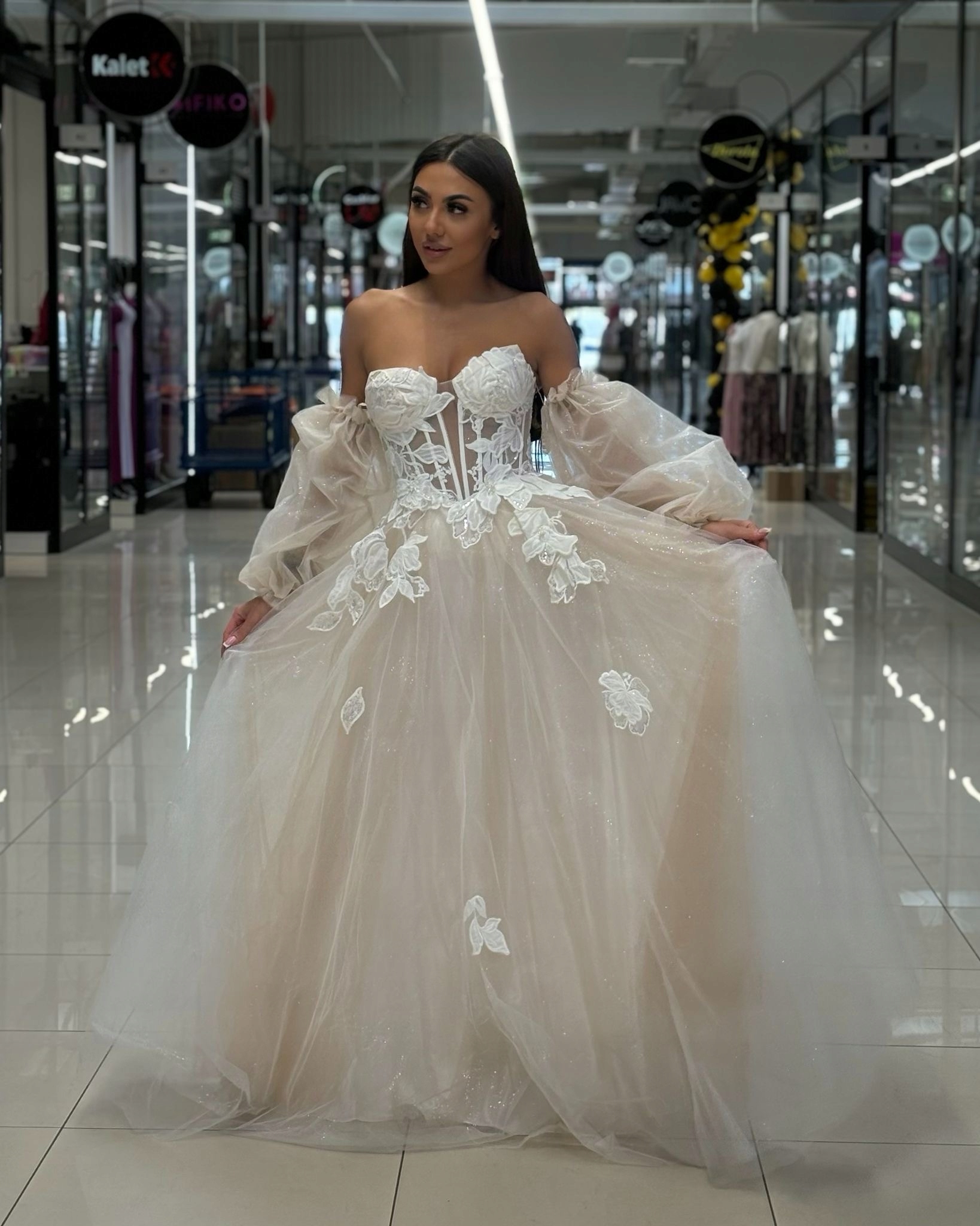 ПЛАТТЯ COFETE ДОВГЕ ВЕСІЛЬНЕ БІЛЕ З БЕЖЕВИМ 40
