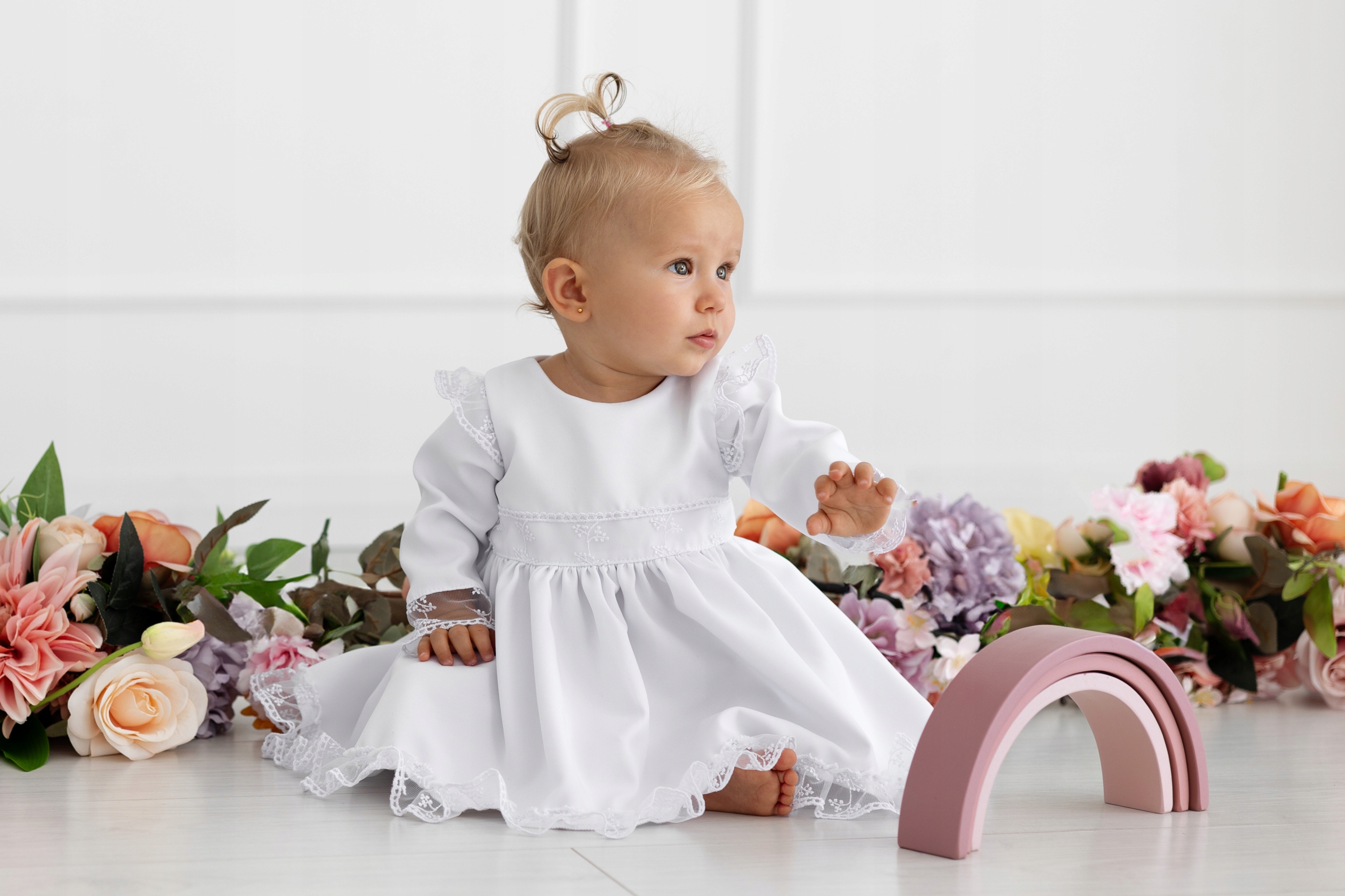 Плаття для хрещення біле, класика, красиве мереживо, 1980-ті роки