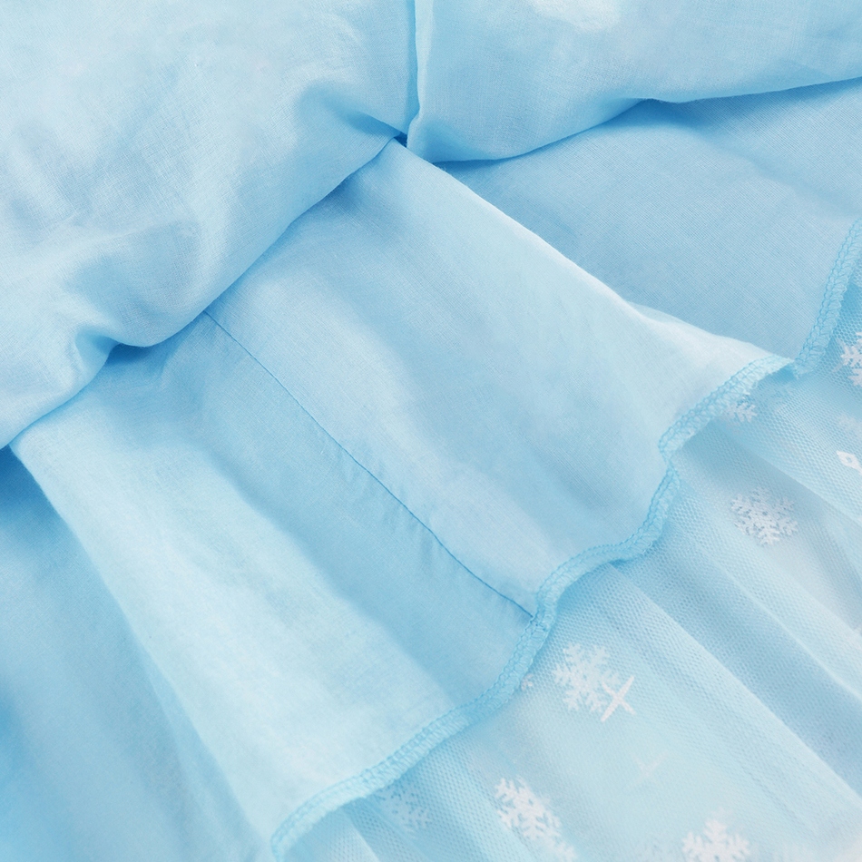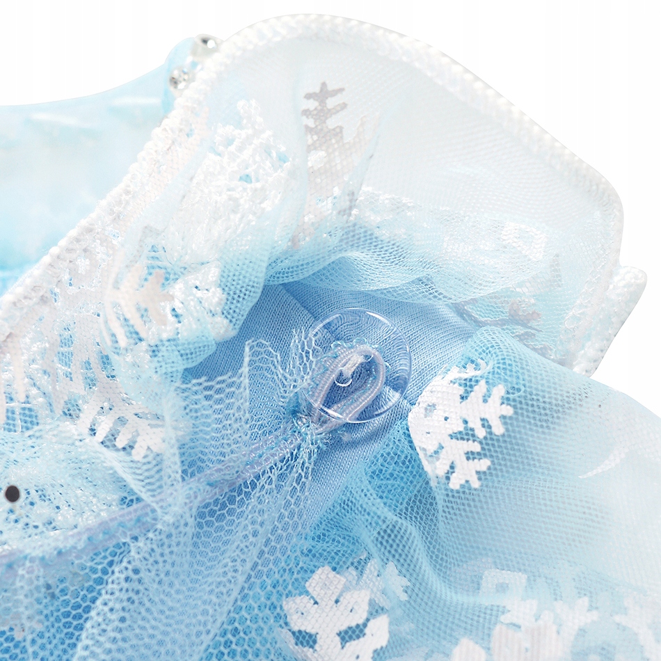 - На тюле платья расположен узор в виде снежинок, который венчает весь силуэт маленькой девочки Снежной Королевы,