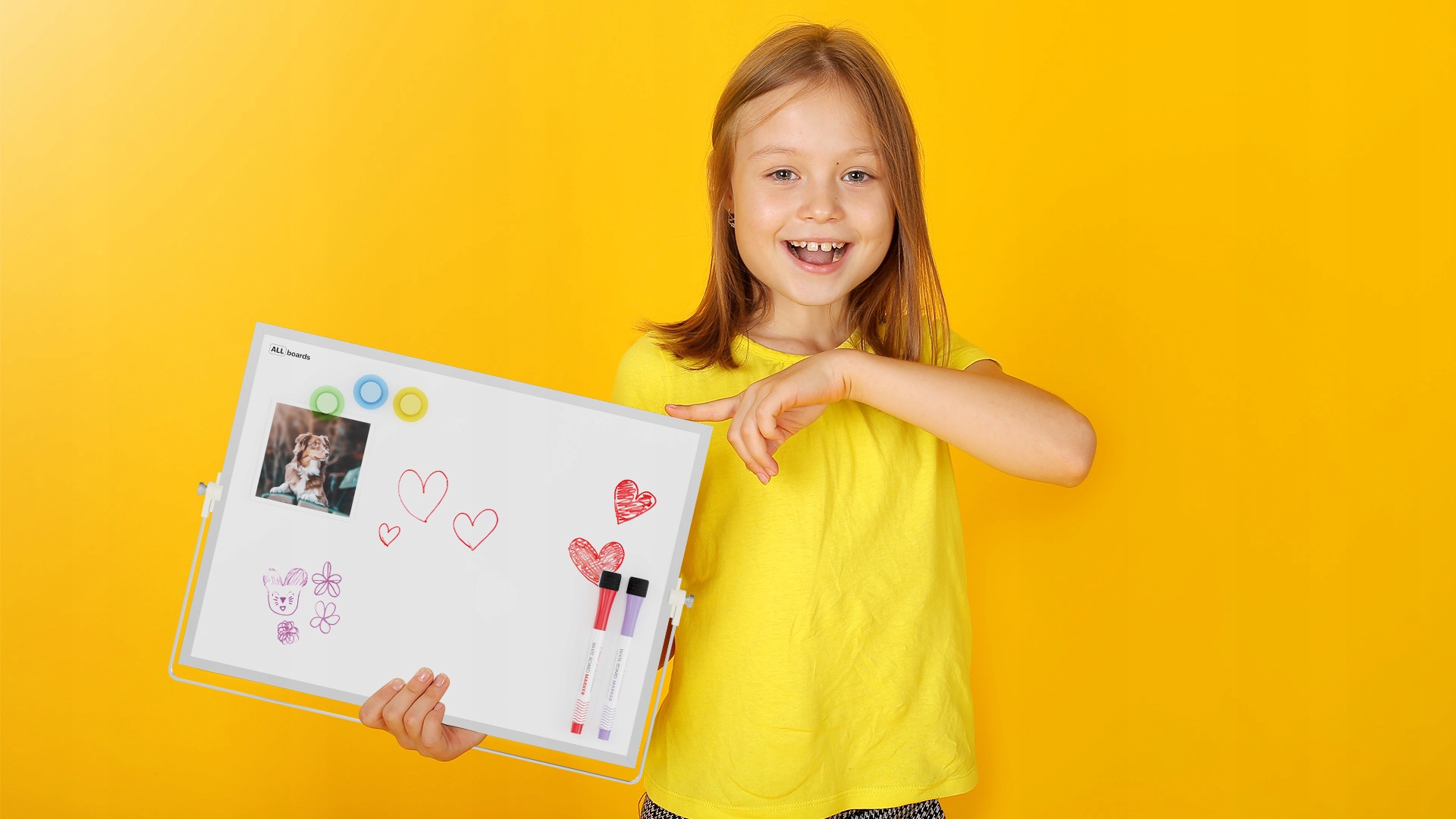 Двойная поверхность -это больше места для важных примечаний. Вы можете использовать одну из страниц для организации информации, связанной с работой или обучением. Второй идеально подходит для создания творческих рисунков и коллажей из распечаток. Если вам нужно быстро вернуться к тому, что на обороте, используйте регулируемую раму и поверните плату.