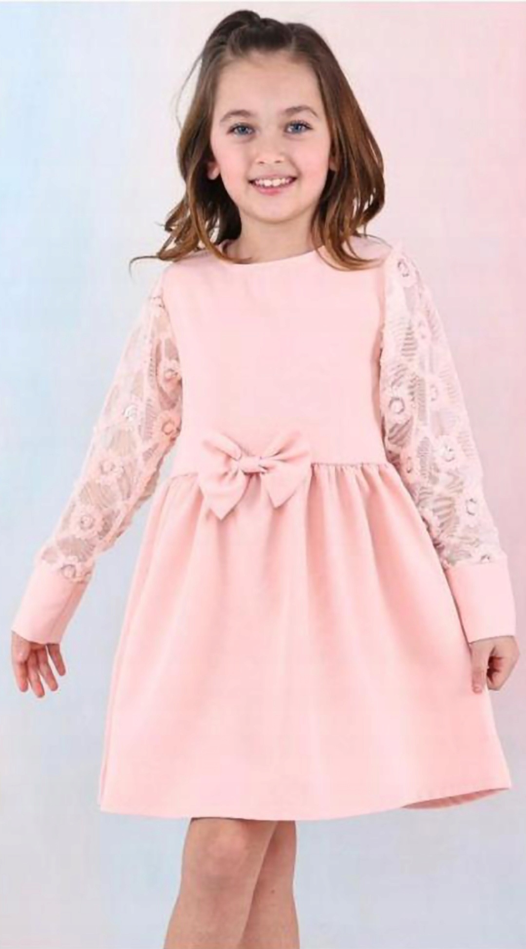 В начале он привлекает свое внимание благодаря длинным рукавам из тюля, которые украшены тонкими цветами в идеально выбранном цвете платья. Рукава закончились широкой манжетой.
