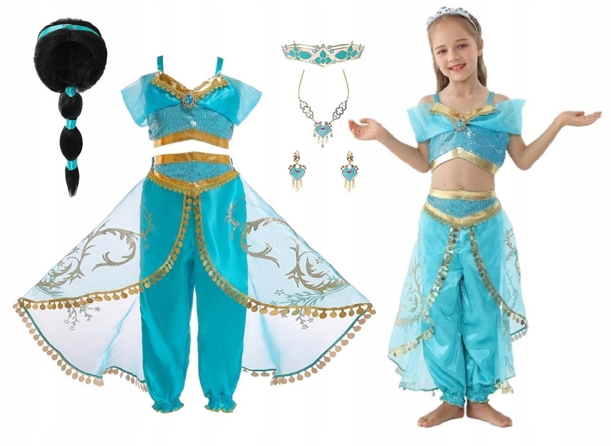 - Костюм, имитирующий напоминающий наряды принцессы Жасмин из одноименной сказки «Аладдин»,