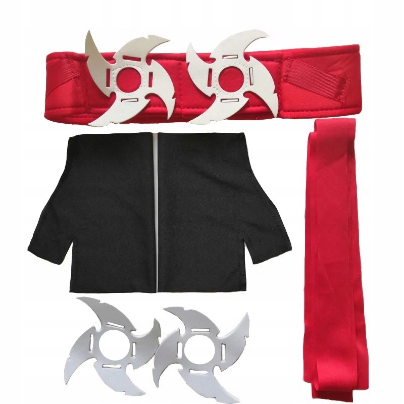 Костюм оснащен красным поясом, к которому постоянно пришиты два сюрикена — два дополнительных предназначены для игры. Сюрикены изготавливаются из легкого и мягкого пластика (пенопласта).