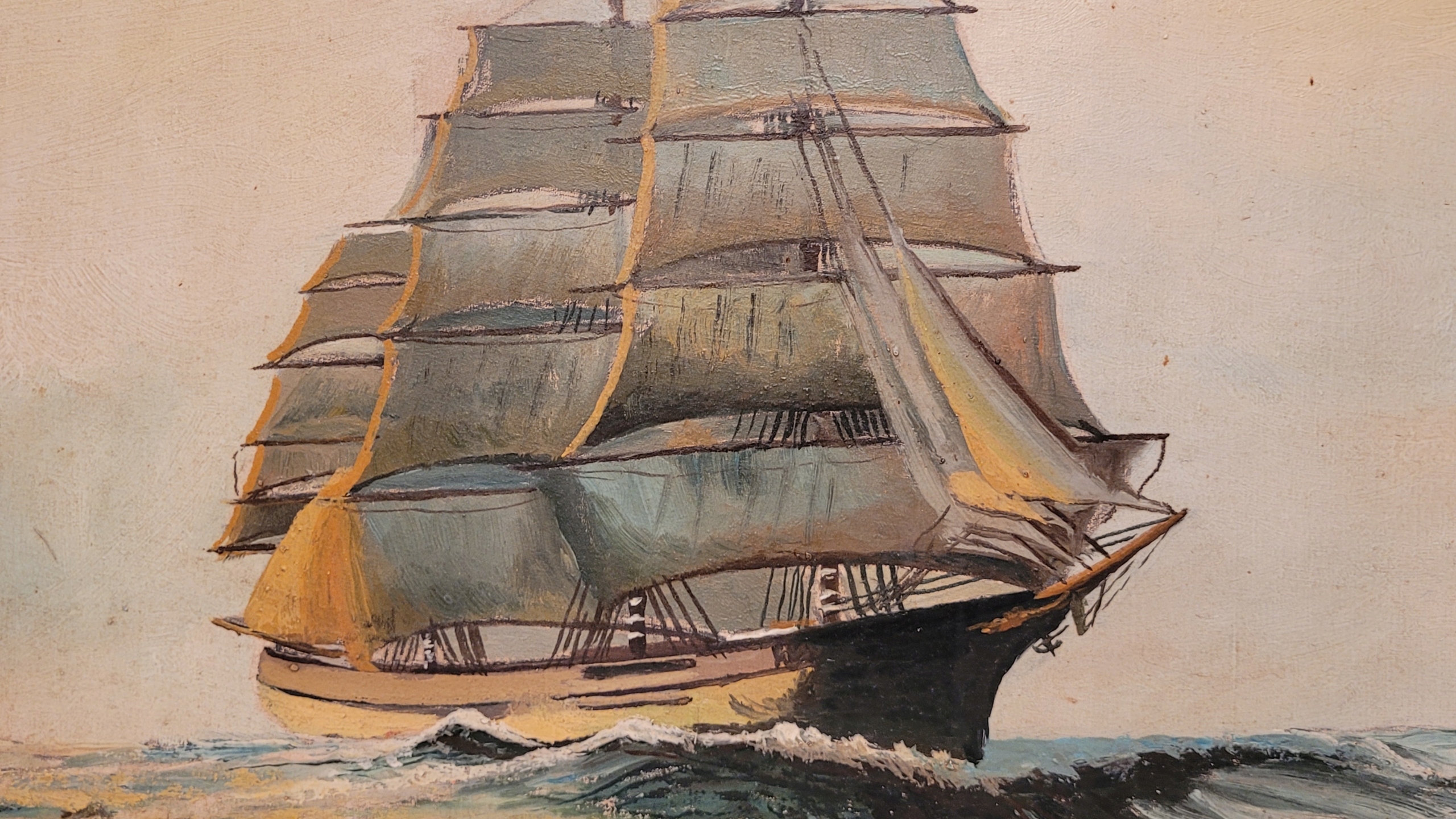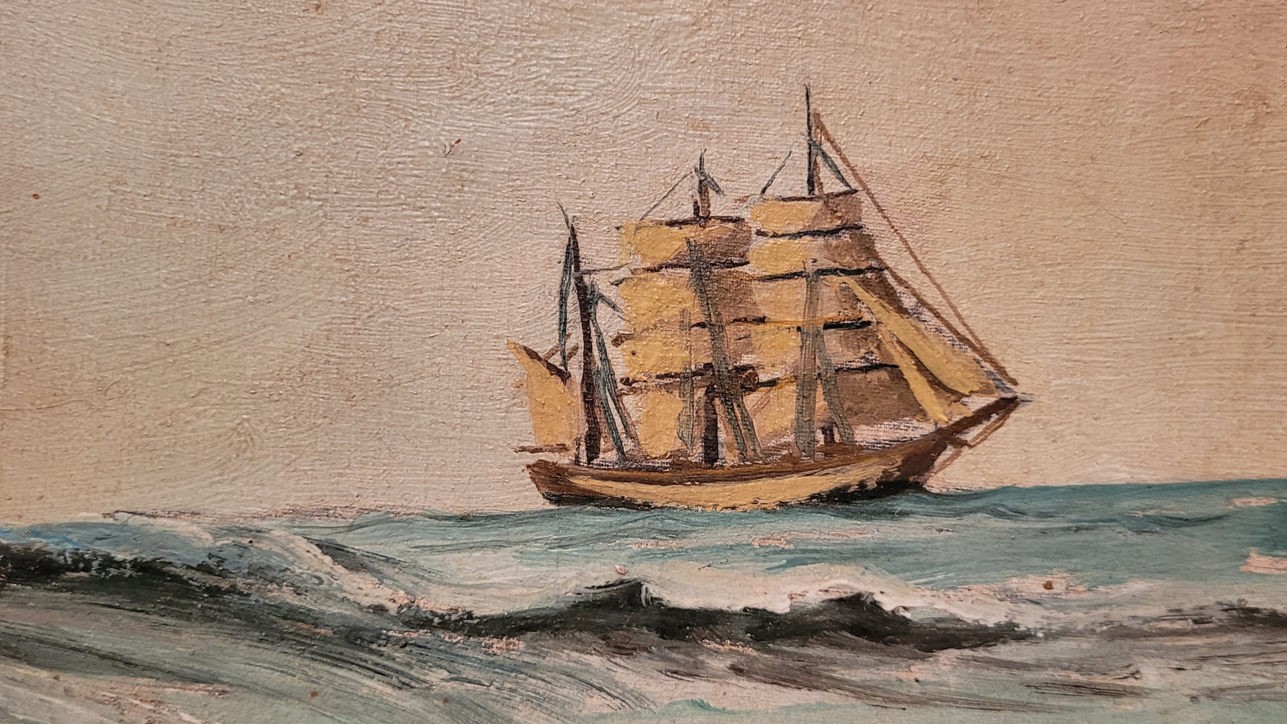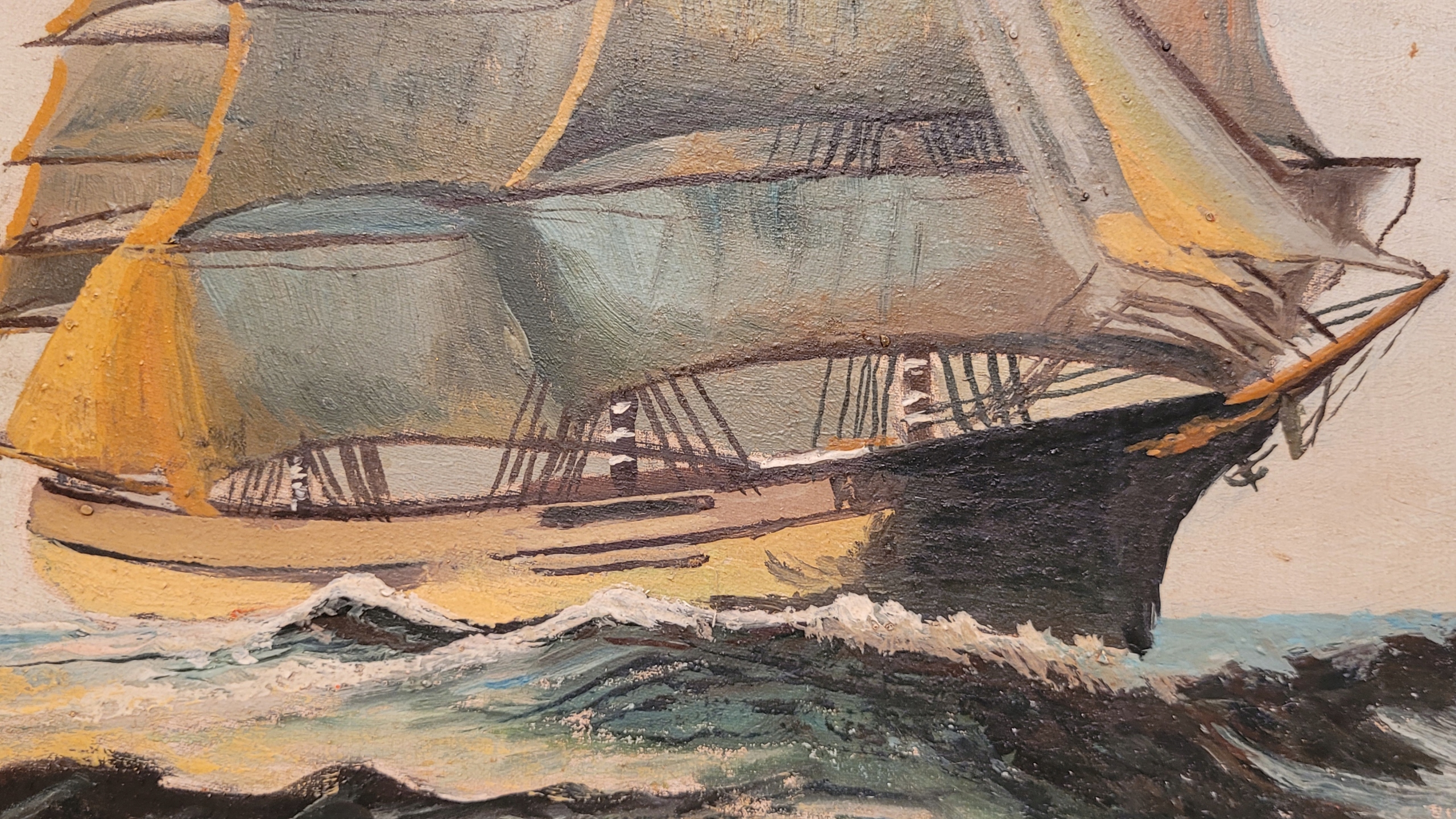 Тема продажи - красивая старая нефтяная картина "парусные корабли".