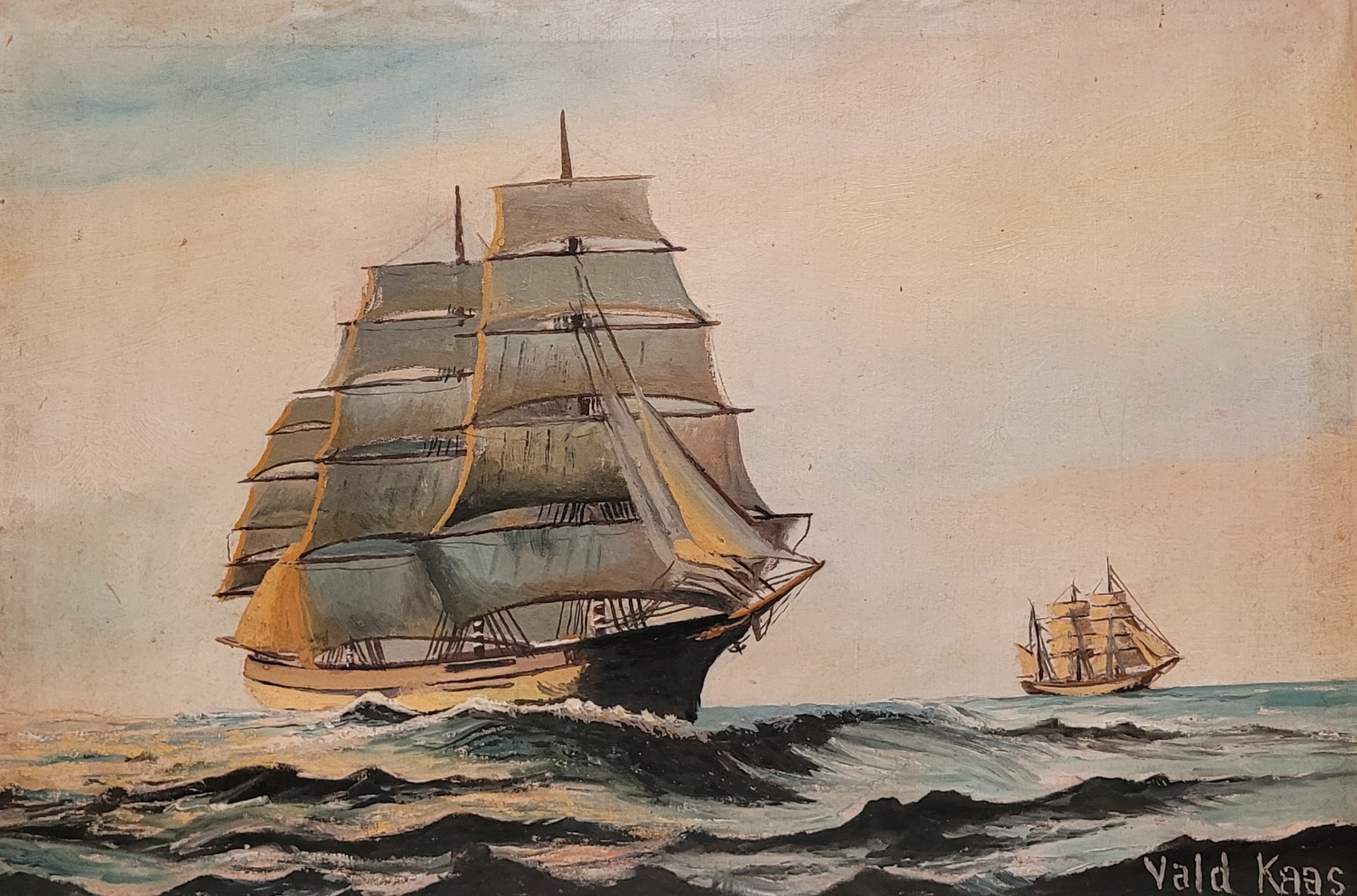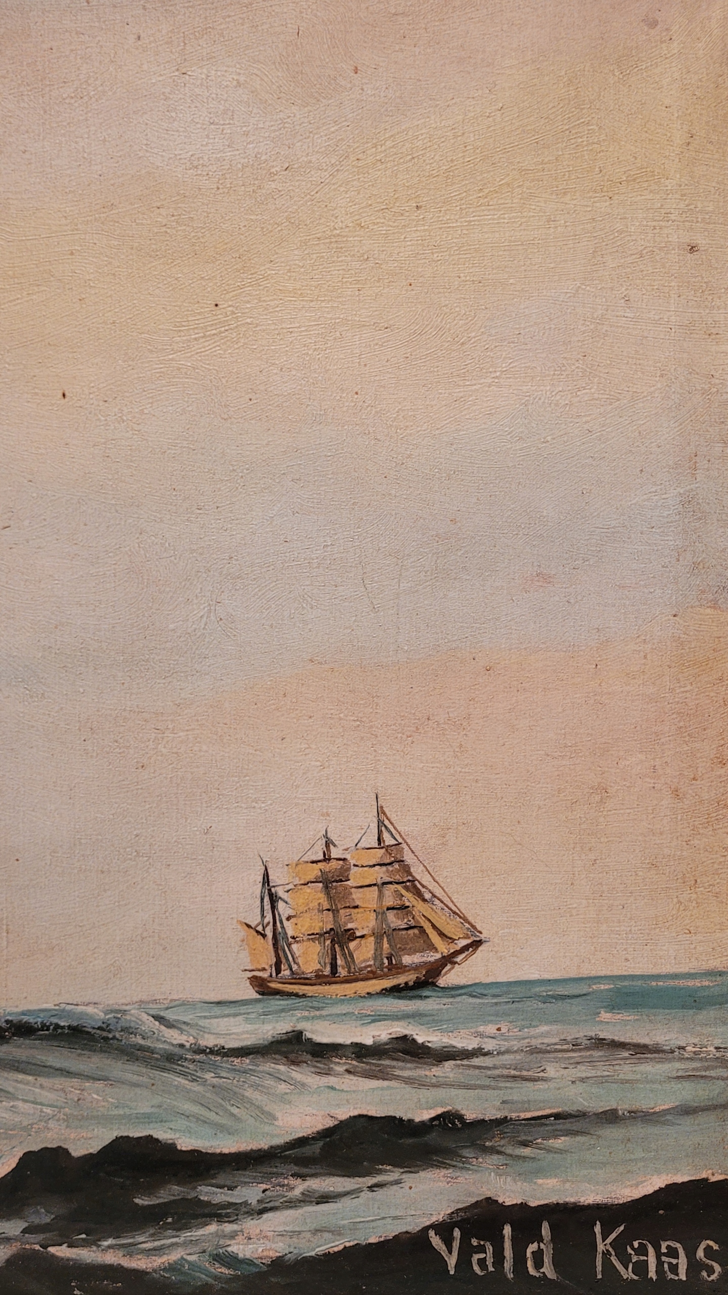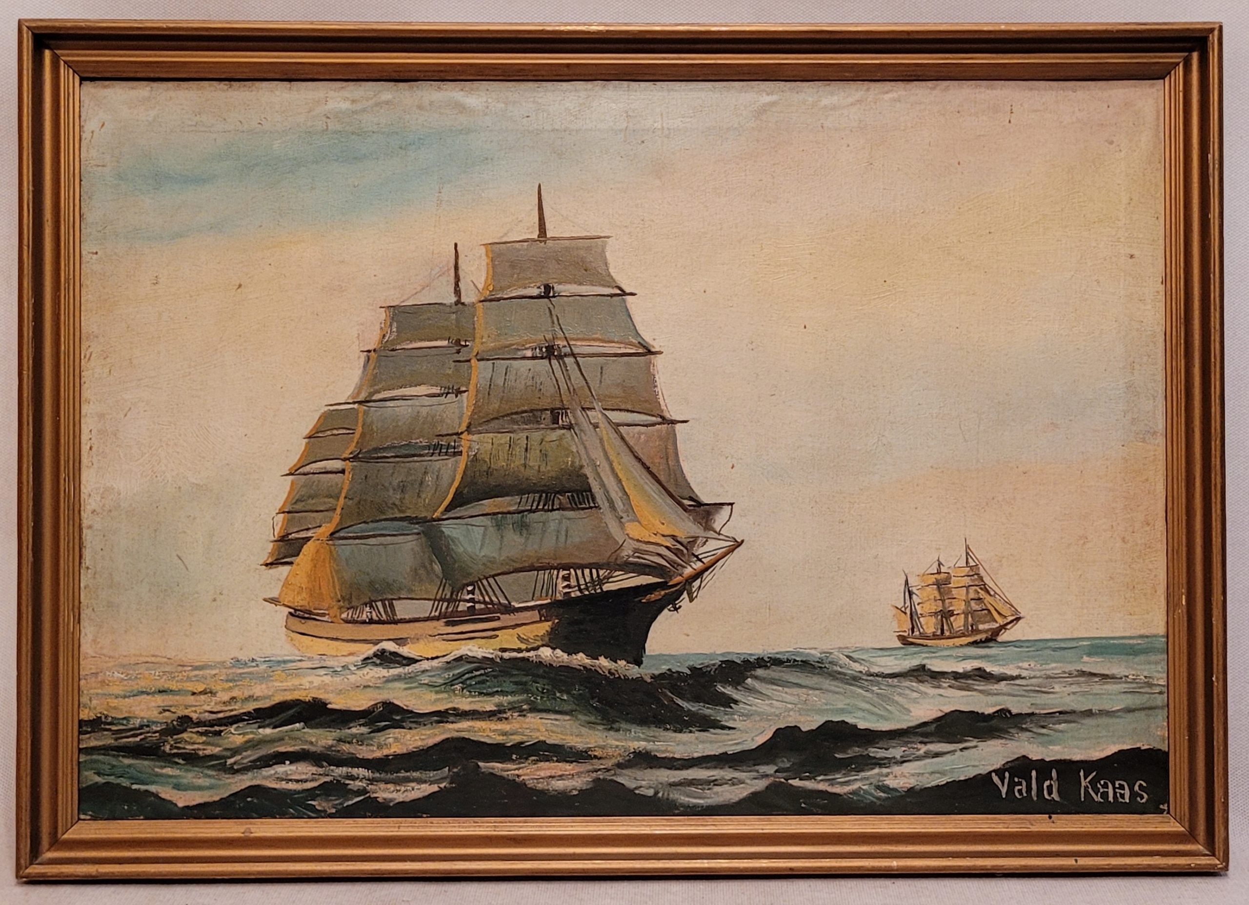 Тема продажи - красивая старая нефтяная картина "парусные корабли".