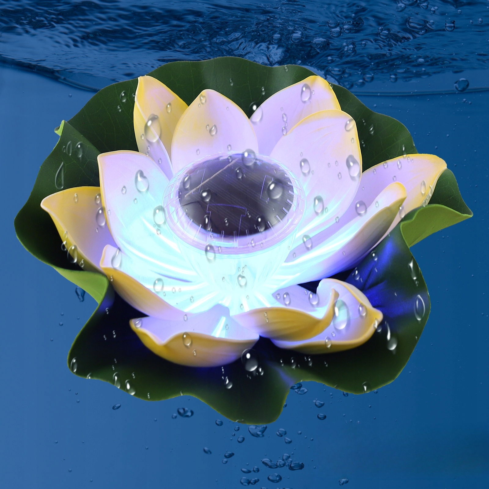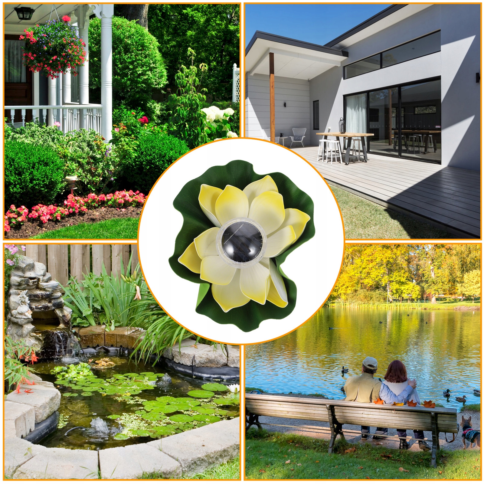 ✅1 *, питаемое на солнечной энергии плавающей цветочной лотос для бассейна, пруда, сада снаружи (красочный желтый свет) p>