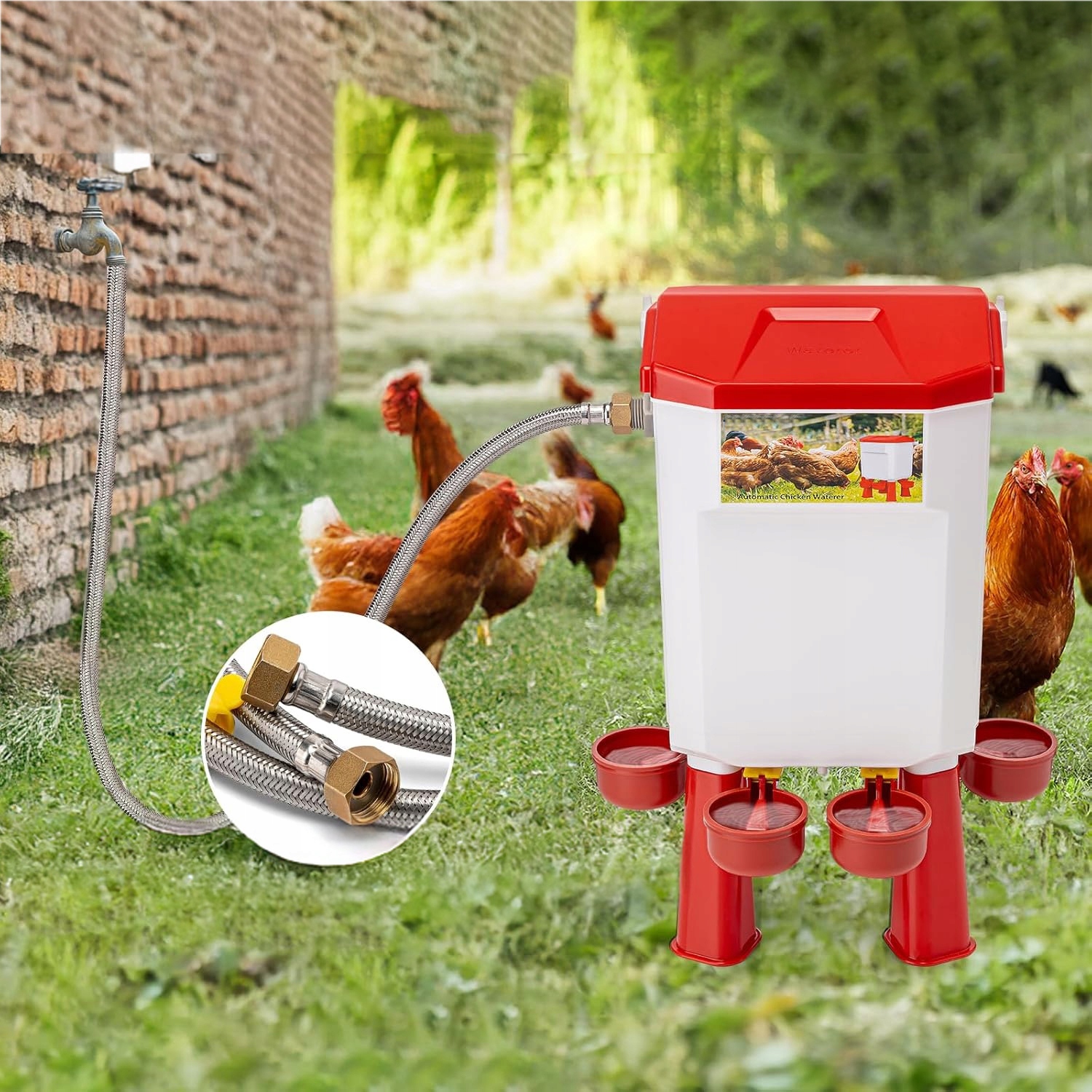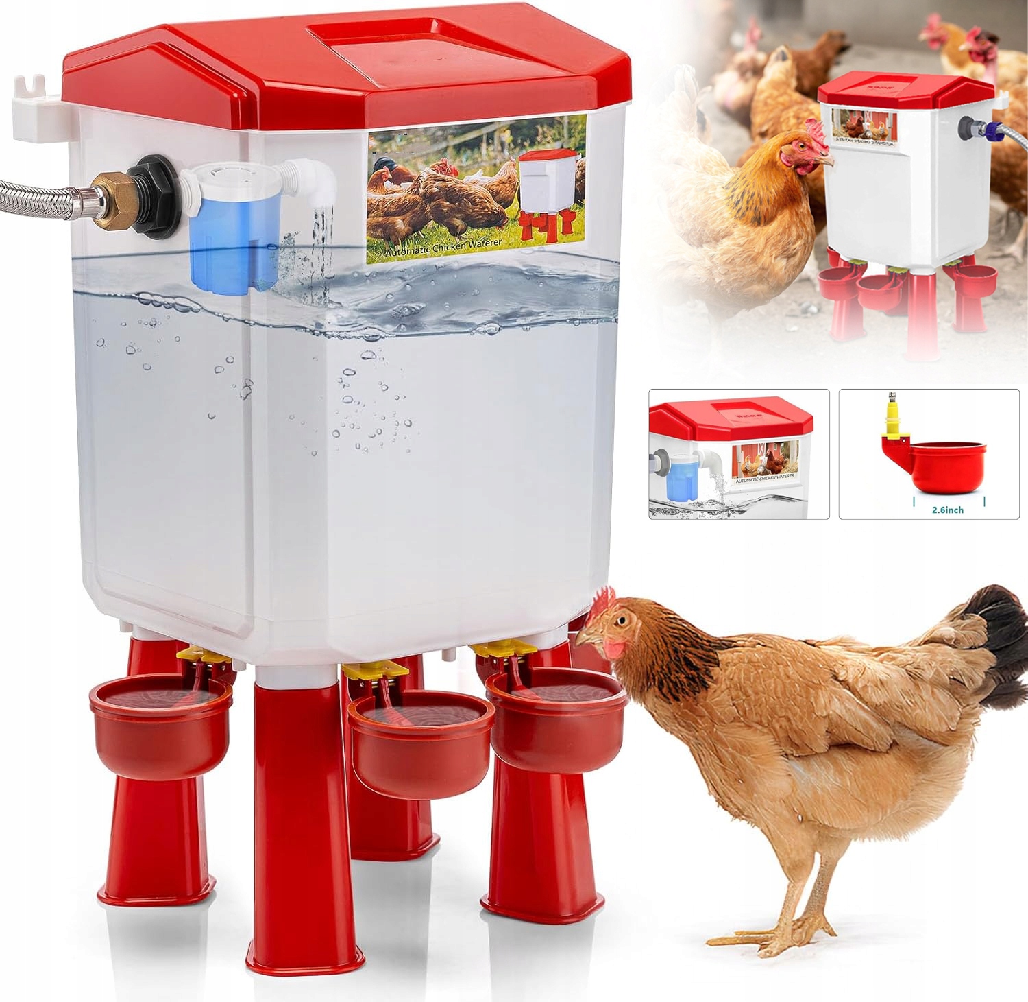 - 🐓- обеспечивает достаточно воды для различных видов птицы, включая цыплят, уток, гусей, голубей, индеек и т. Д.
