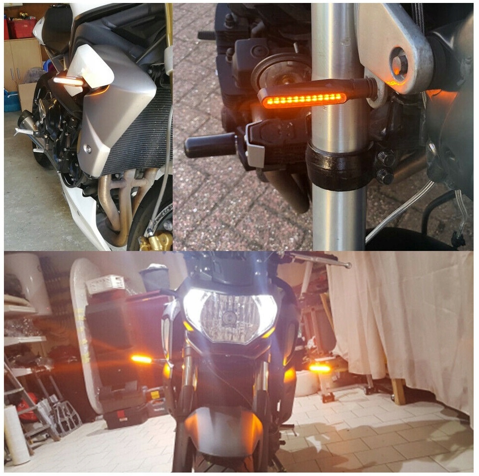 Указатели поворотов установлены на резьбу М10, оснащены гибким кронштейном, предохраняющим мигалку от поломки.