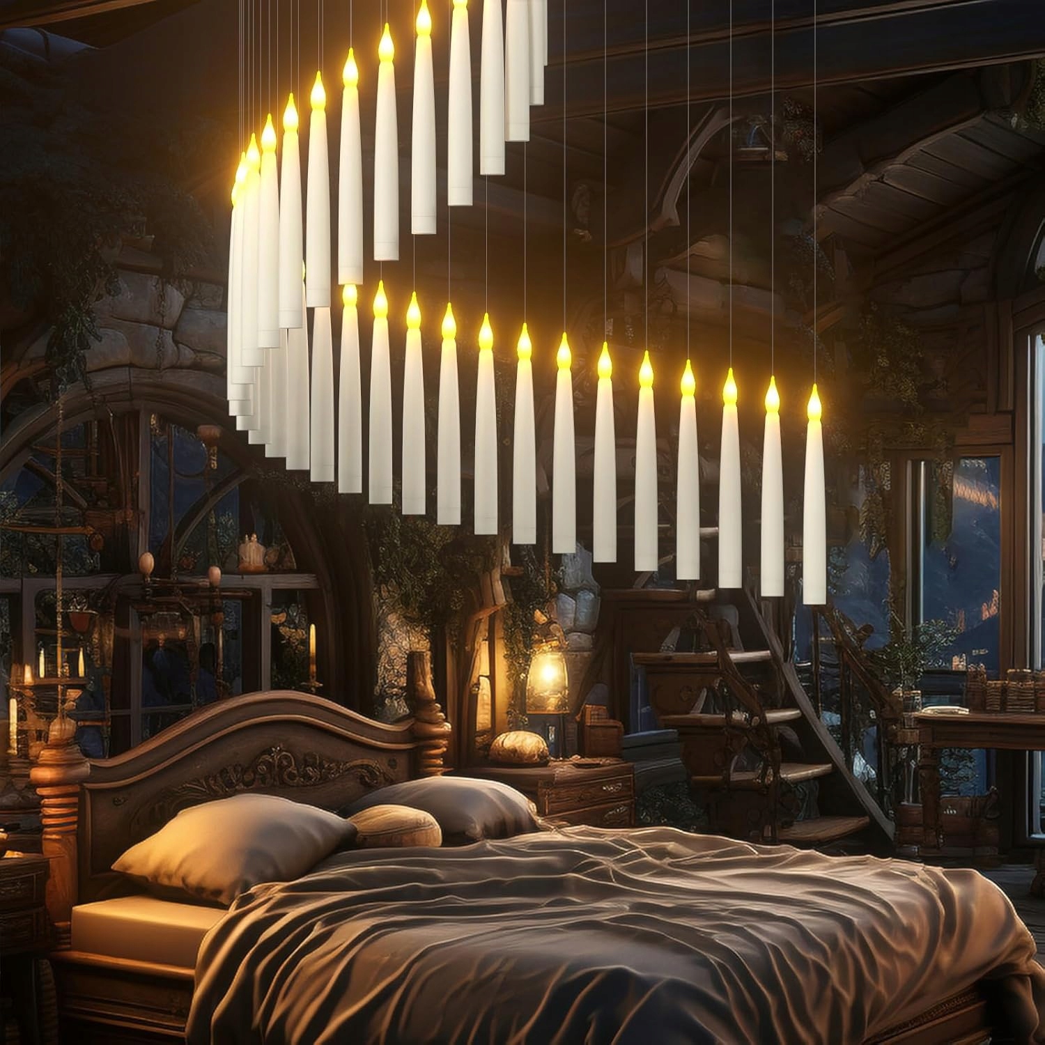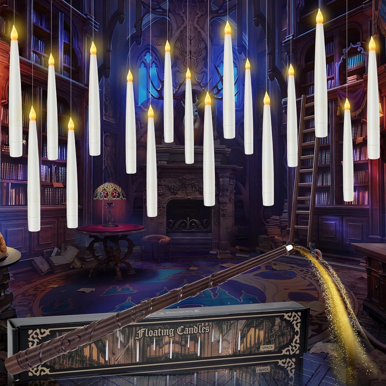 Эти беспламенные светодиодные свечи имеют почти невидимую веревку длиной 50 футов. Создайте свое собственное волшебное пространство по своему вкусу. Вы можете повесить эти свечи на потолок или использовать крючки, чтобы повесить их на окна, стены или рождественские елки. Они идеально подходят для украшения Хэллоуина, а также для украшения камина, обеденного стола, а также для украшения дома и сада. Забавный пульт дистанционного управления в форме палочки в сочетании с плавающими свечами создает волшебную атмосферу.
