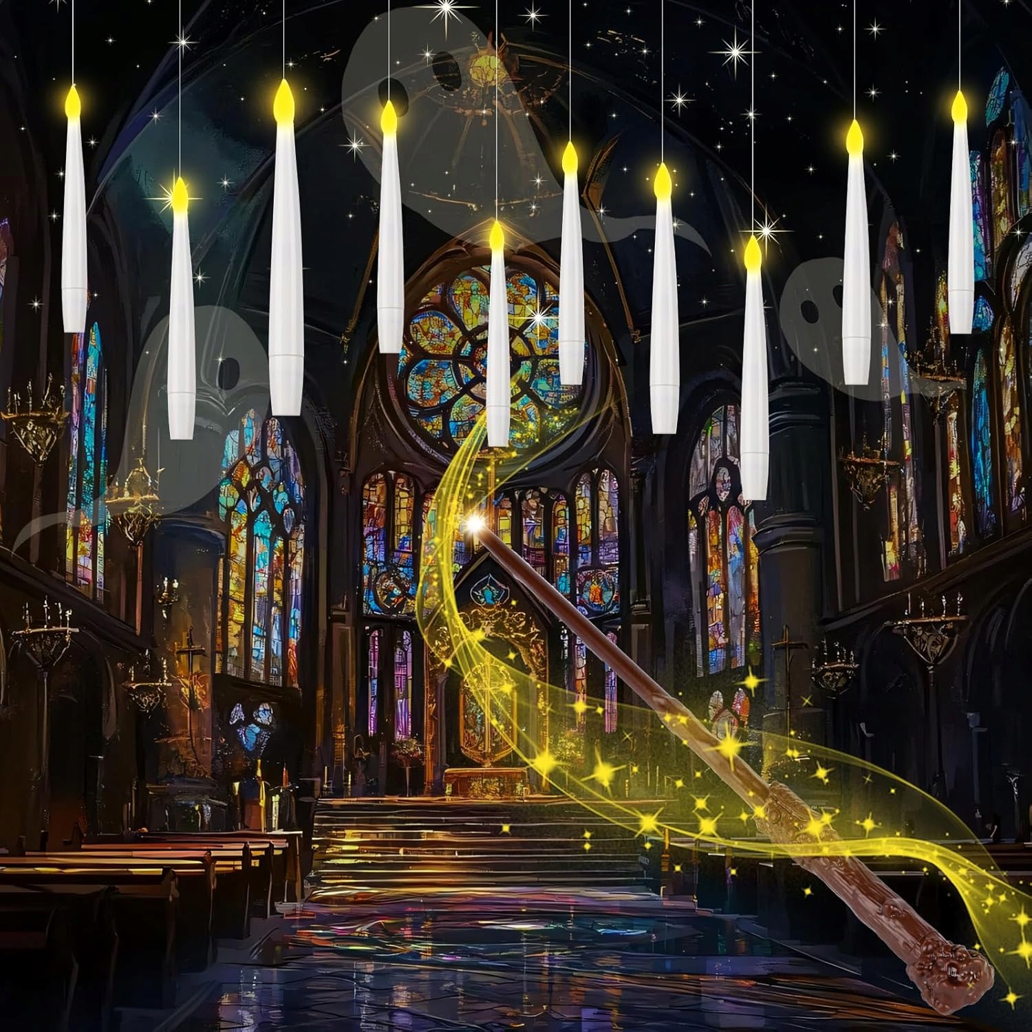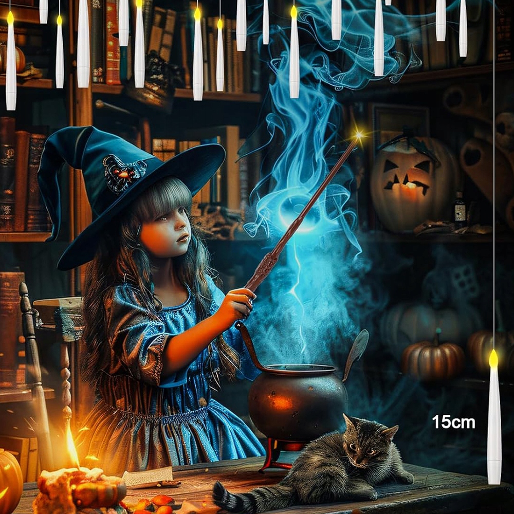 Эти беспламенные свечи с дистанционным управлением в форме палочки — идеальный подарок на Хэллоуин для любой ведьмы. Подвесные свечи и пульт дистанционного управления в форме палочки передают атмосферу волшебного мира. Помимо создания настроения Хэллоуина, они также идеально подходят для украшения вечеринок и свадеб — это волшебный гаджет, который непременно поднимет настроение! Наша продукция запатентована и аутентична.